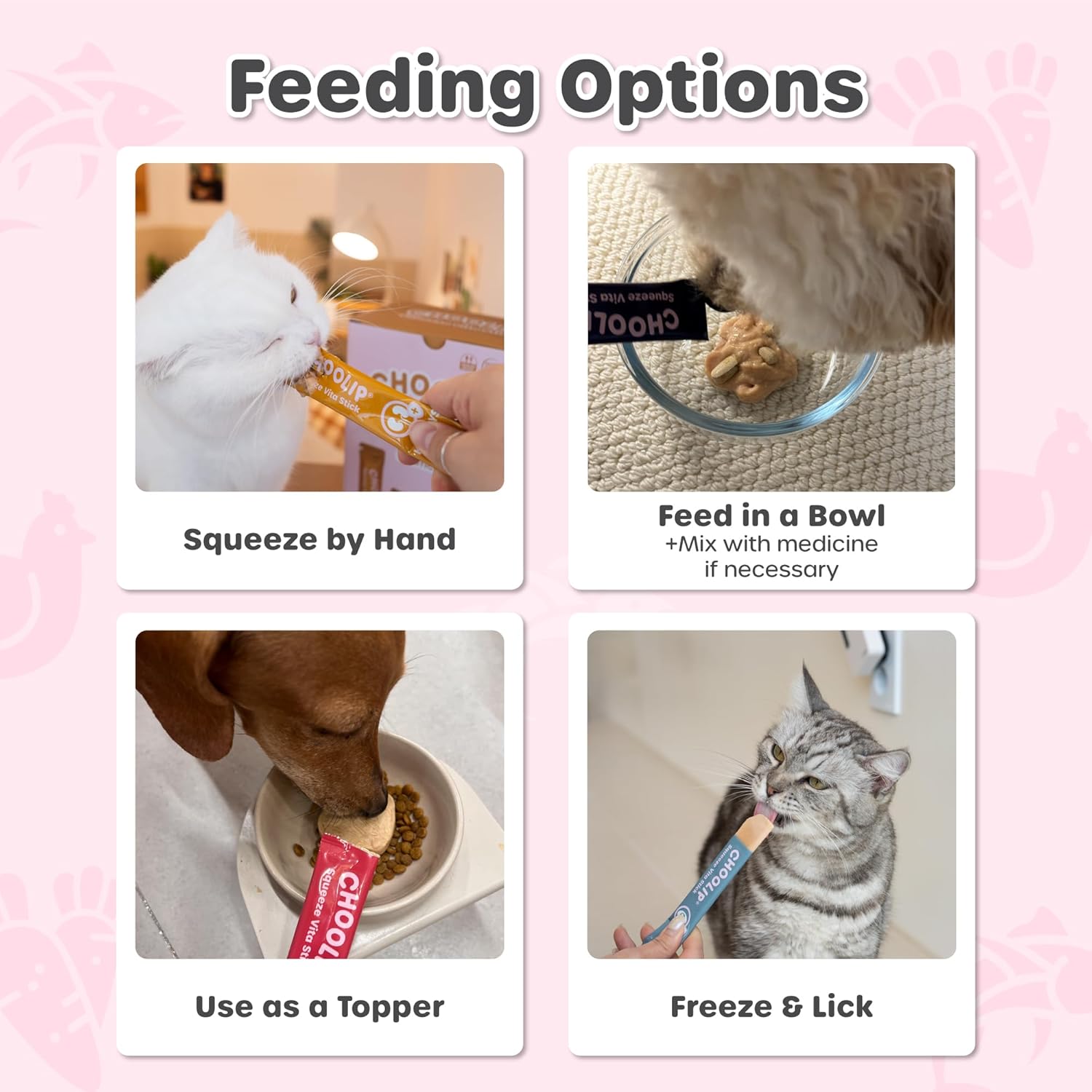 • TREATS FOR CATS AND DOGS: Why not smear their favorite lick mat in our nutrient dense paste? Dogs love it! And, our high protein, low calorie, multivitamin dog treats and cat treats have 9% crude protein and 83% moisture per serving. A wet cat food and dog food supplement, 1-3x a day