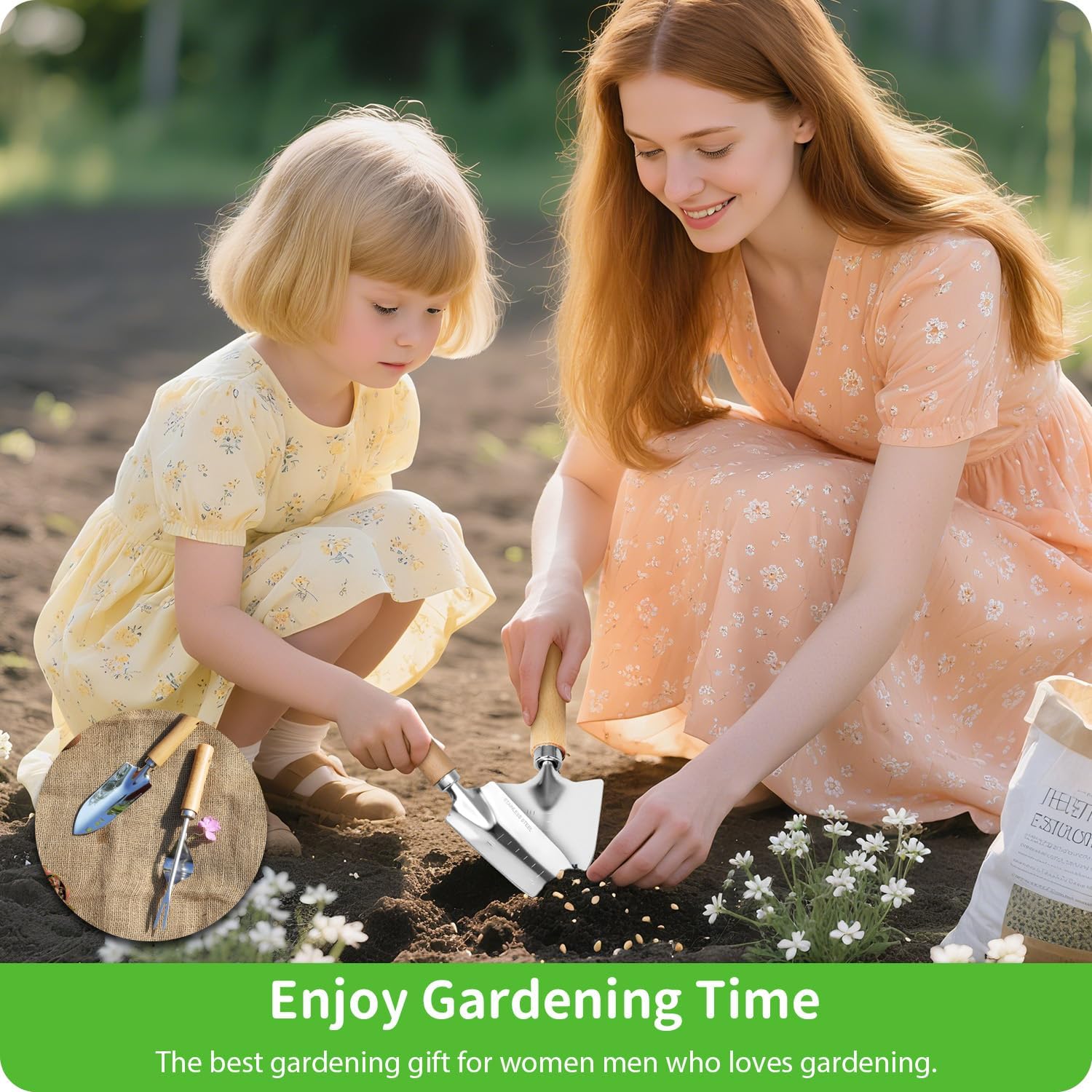 Garden Tool Set, 2 Pieces Stainless Steel Heavy Duty Garden Tools, Garden Kit with Ergonomic Wooden Handle, Durable Garden Tools for Gardening, Gardening Gifts for Women