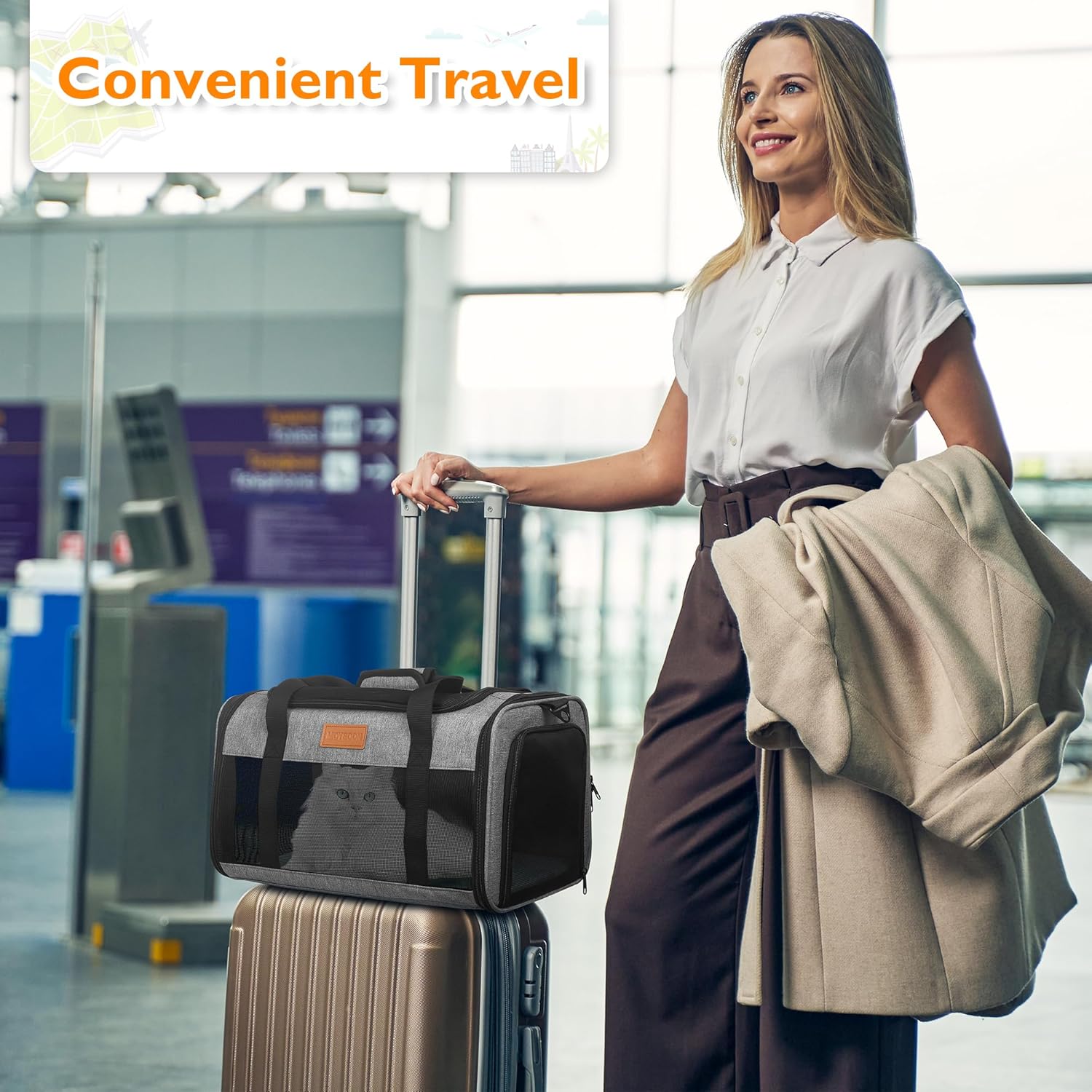 - 【Convenient Luggage Strap for Hassle-Free Travel】 Designed with a luggage trolley strap, the PETUX cat travel carrier easily attaches to your suitcase, making travel stress-free. No need to carry your pet separately — simply roll your luggage with the top-loading cat carrier attached for hands-free convenience. Ideal for pet owners who travel with both pets and luggage