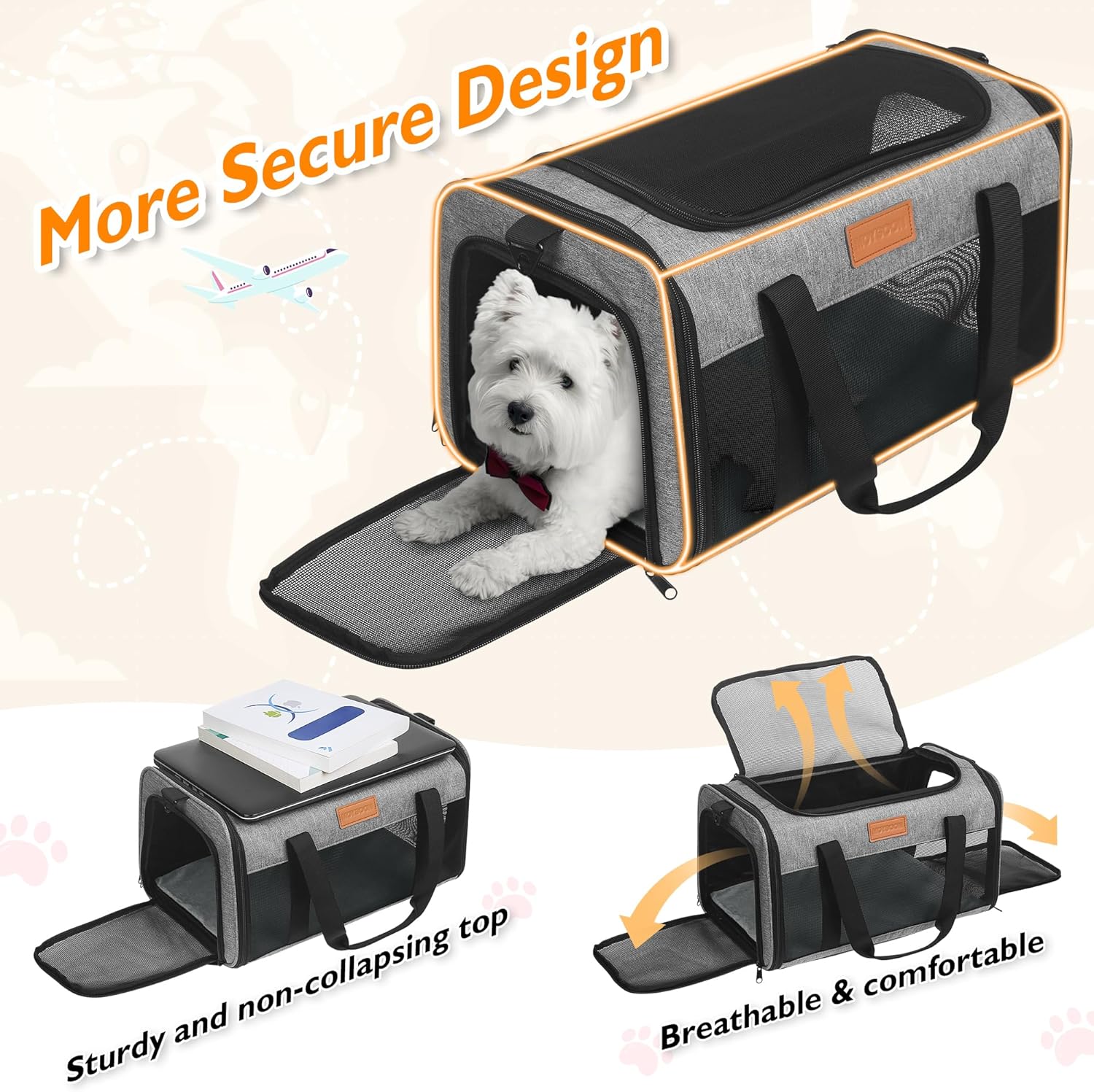 - 【TSA-Approved Pet Carrier in Cabin】 It is mainly designed for Alaska Airlines: 17x11x9.5", but also in compliance with Southwest Airlines: 18.5x13.5x9.5"; Delta Airlines: 18x11x11"; United Airlines: 18x11x11"; American airlines: 18x11x11"; Air Canada: 21.5x15.5x10.5"; So we recommend you buy this carrier when you fly with the airlines mentioned above