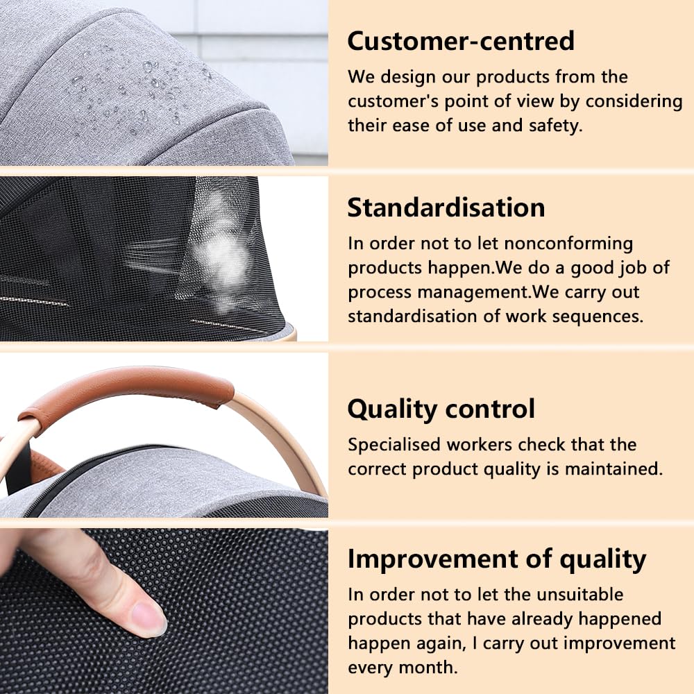 • SAFETY AND RELIABILITY: The four wheels are made of durable PU material to suit all occasions. The pushchair has large wheels and the front wheels can swivel 360°, these wheels not only ensure durability but also provide smooth and quiet operation. Whether you are walking on the sidewalk or on rough ground, our pet stroller will provide a comfortable and pleasant experience for your pet.