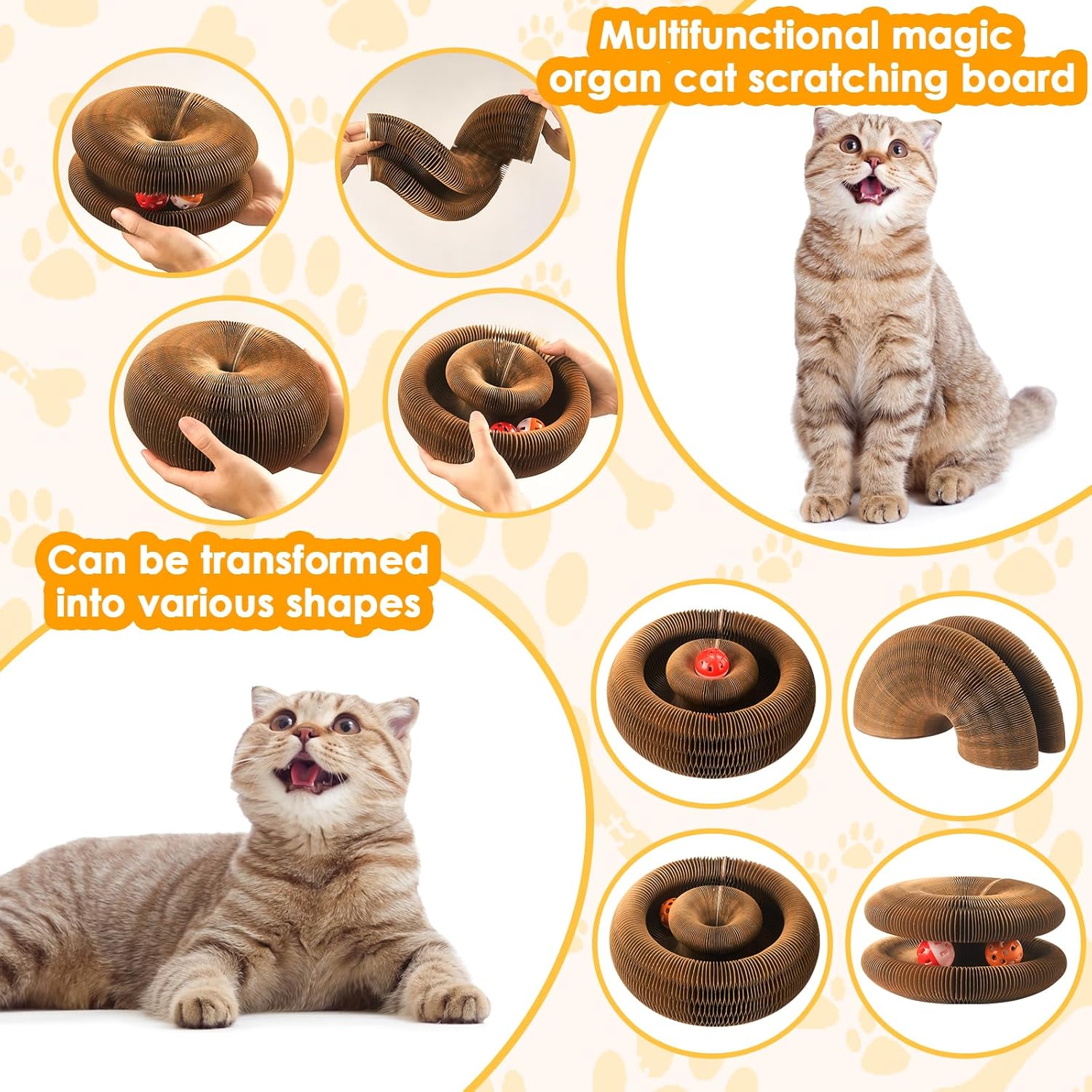 • ACCORDION CAT TOY: Made of high-quality corrugated paper, honeycomb encryption and thickening, tight gaps, strong magnet adsorption, no glue. Provides a comfortable scratching experience for cats' claws, not only satisfies the nature of cats, but also ensures their health and safety. Durable materials ensure long-term use. It is an excellent investment for friends who own cats