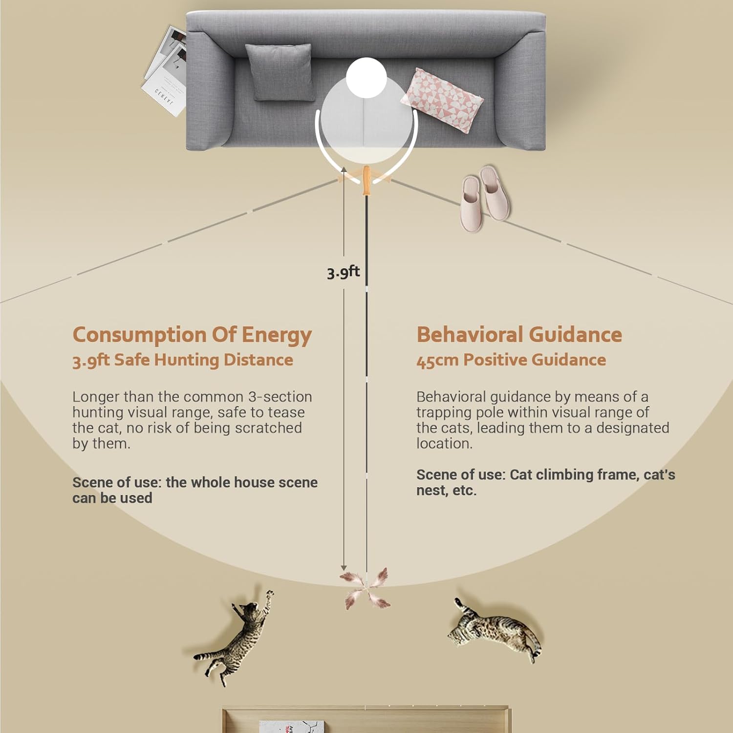 • Cat Fishing Pole Toys with Innovative 4-Section Design: The cat fishing pole extends to an impressive 53.15in, giving the kitty ample space to run and jump with glee. After playtime, the toys conveniently retract to 16in for easy storage.