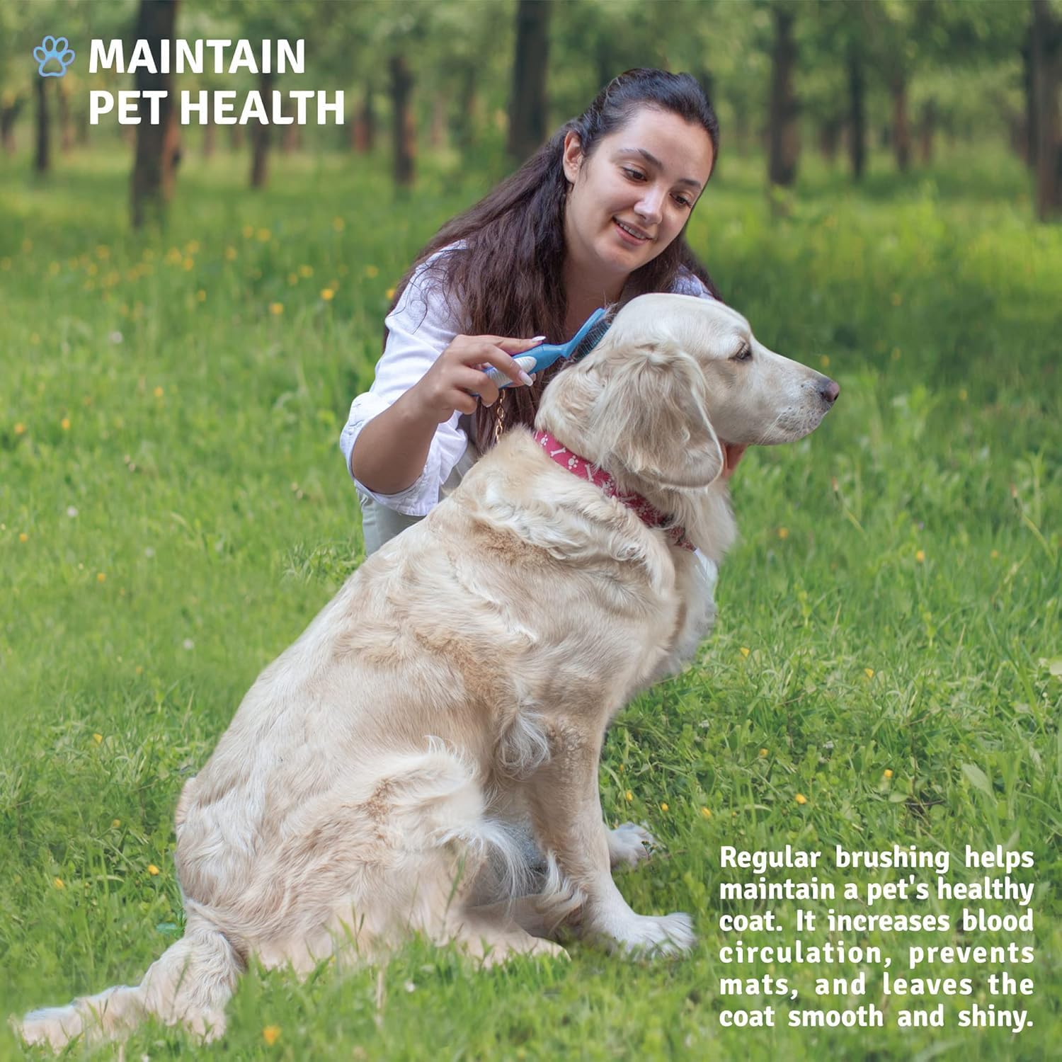 • MAINTAIN PET HEALTH: Regular brushing helps maintain a pet’s healthy coat, increases blood circulation and prevents mats by leaving a pet’s coat smooth and shiny; it also keeps the air cleaner and healthier.