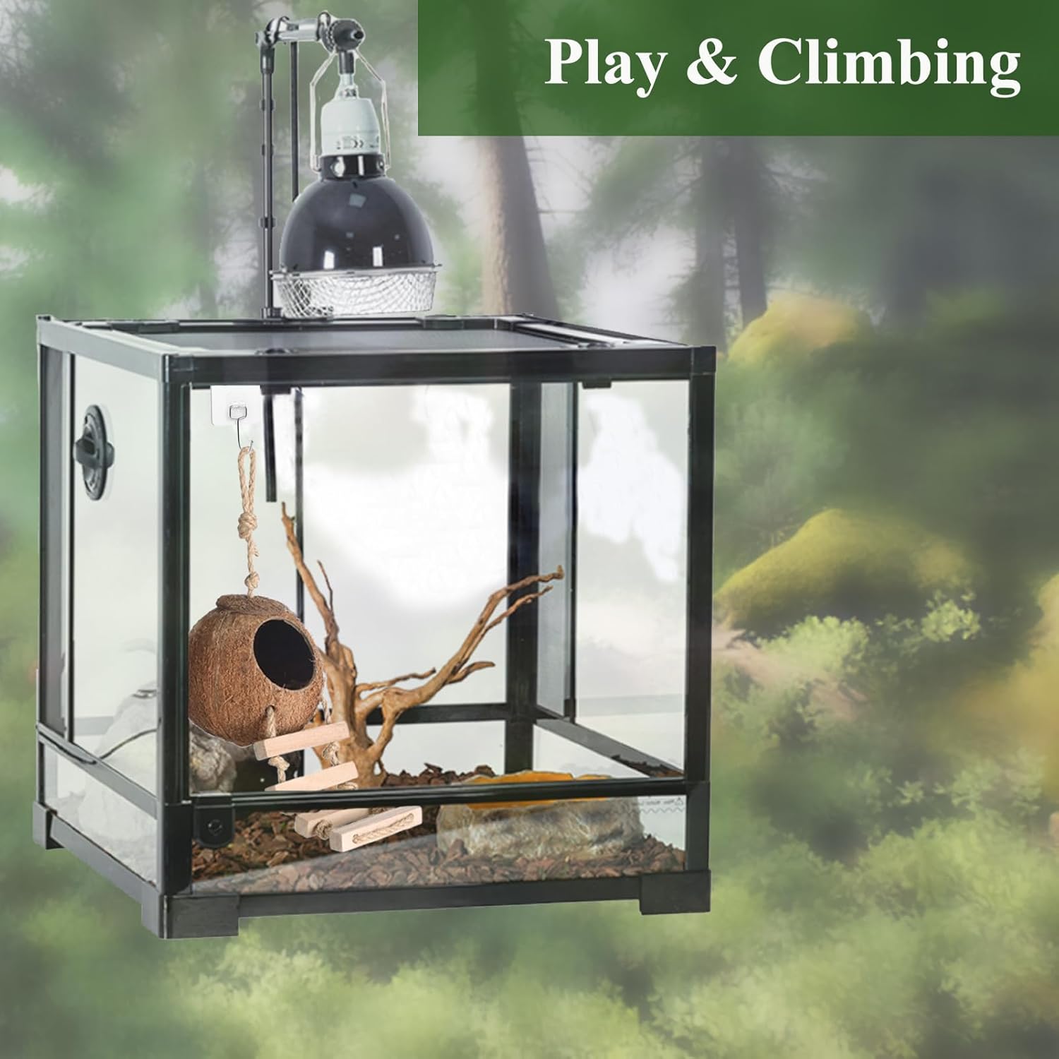 • 【Climb Ladder】The coconut shell nest provide a relax and recover place for lizards, they can isolates loud sounds, activity and bright light. Reptiles climb and play the ladder can release excessive or anxious energy to relieve stress.