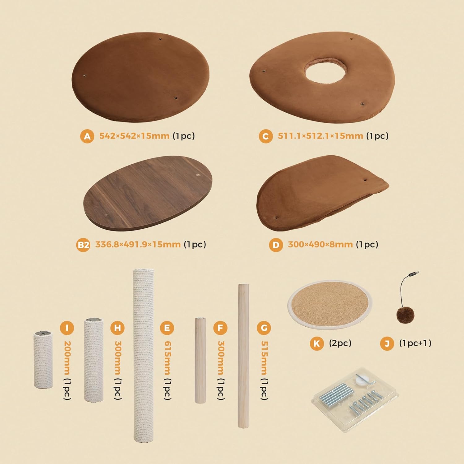 • MODERN DESIGN: The wooden elements added in this cat tower and the irregular platforms modernize the whole cat tree. When designing this cat tree, the color of beige was widely employed to create a warm and harmonious tone. It can also be perfectly fit in furniture with various styles