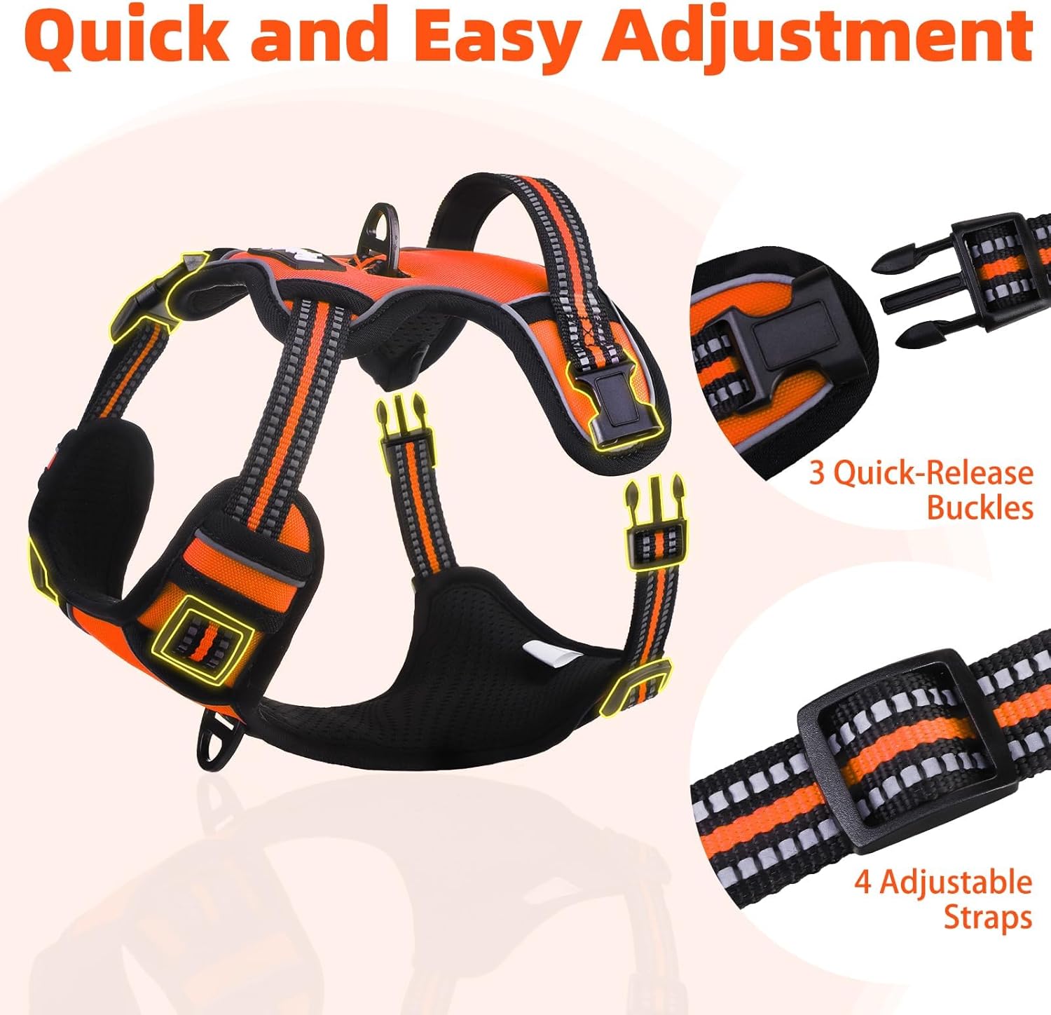 • REFLECTIVE SAFETY STRIP: This dog harness features reinforced stitching for added toughness. Multiple reflective strips improve visibility. Suitable for a variety of occasions and can be used for a variety of activities such as daily walks, running, hiking, and training. Keeping your dog safe on night walks