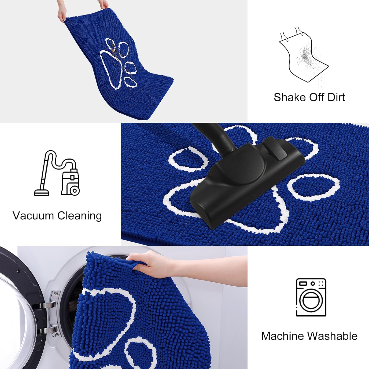 Smiry Dog Door Mat for Muddy Paws, Absorbent Dirt Trapper Non Slip Quick Dry Washable Chenille Mat for Mud Dogs, Entry Rug for Indoor and Outdoor (30x20 Inches, Royal Blue)