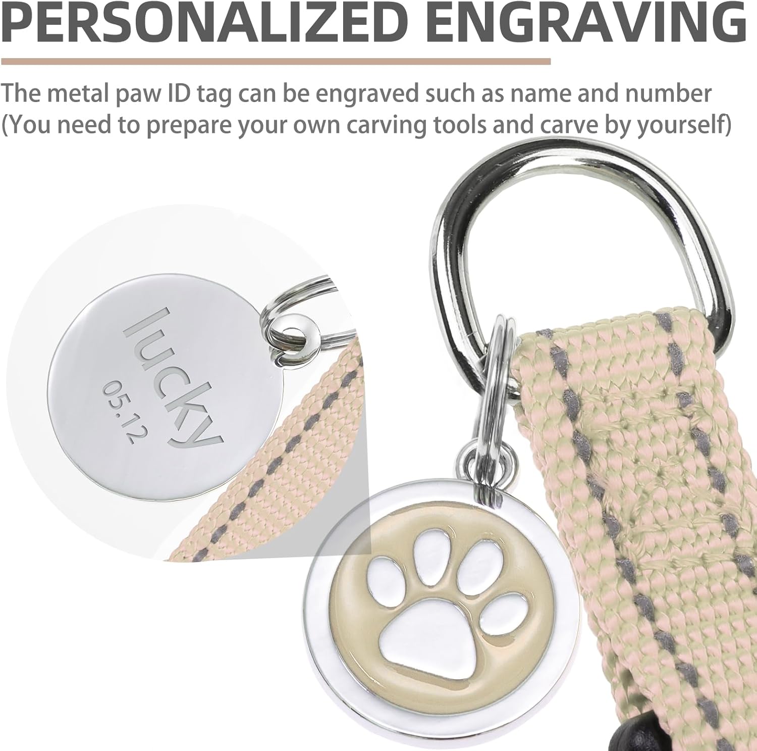 • [Cute ID Tag for DIY] - Each harness is equipped with a metal ID tag, and the front is a cute paw pattern, while on the back, you can engrave whatever you want, such as the dog's name and so on. It does not corrode as easily as wooden labels and is durable. You can also remove it when washing the harness.