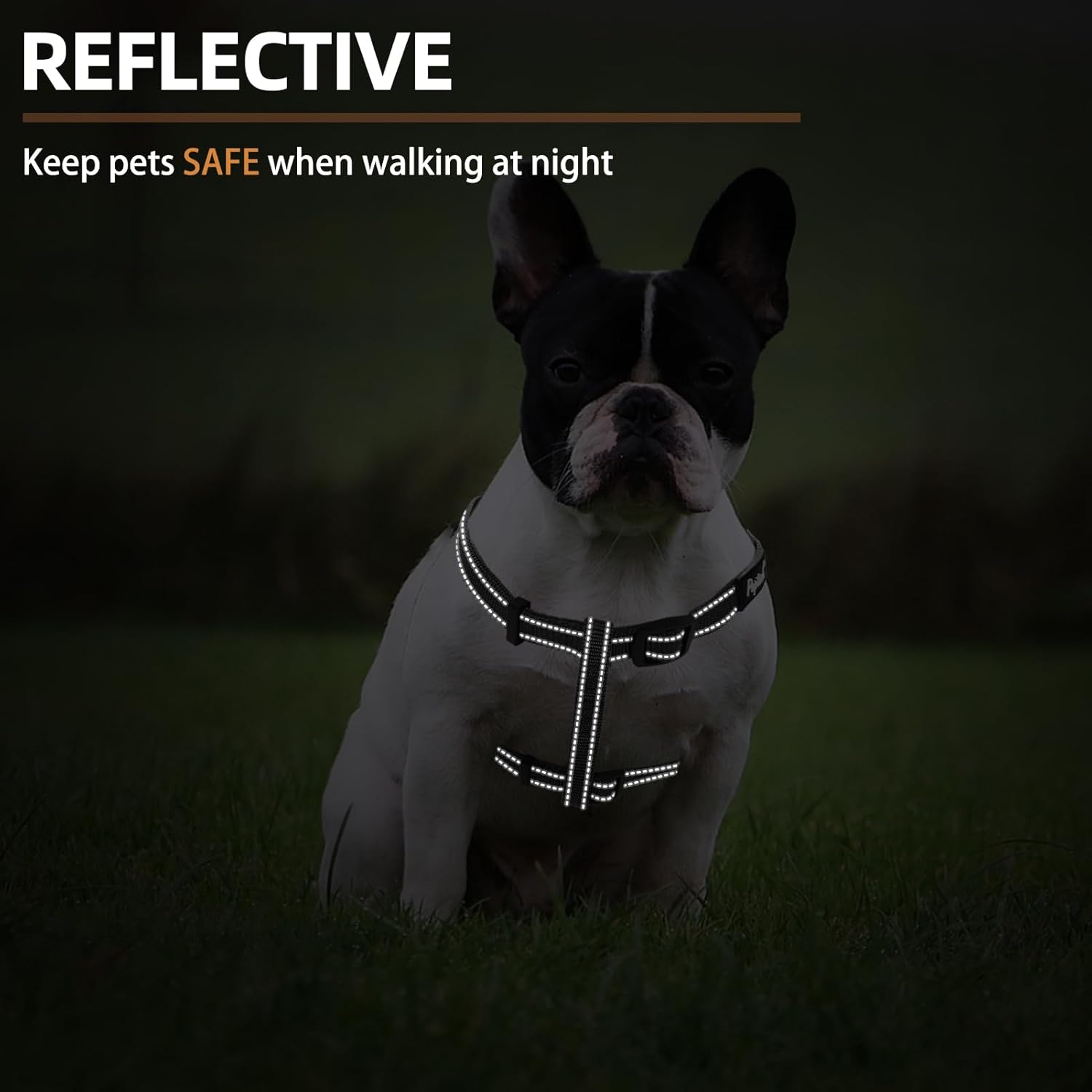 PUPTECK No Pull Dog Harness Soft Adjustable Basic Nylon Step in Puppy Vest Outdoor Walking with ID Tag, Reflecive Black, S