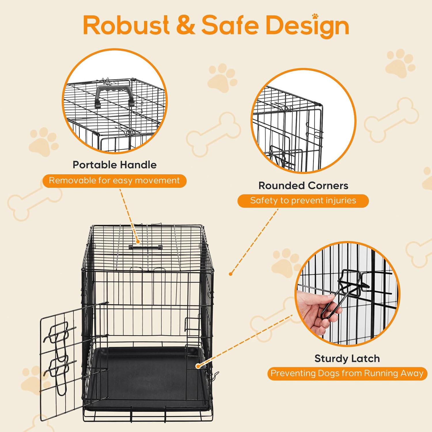 • OPTIMAL SECURITY: The rounded edges and smooth rounded corners, ensure a safe environment for your pet. The dog crate is equipped with thick metal mesh and double doors, both featuring heavy-duty sliding bolt locks. These features not only prevent your dog from escaping but also provide optimal protection for your furry friend.