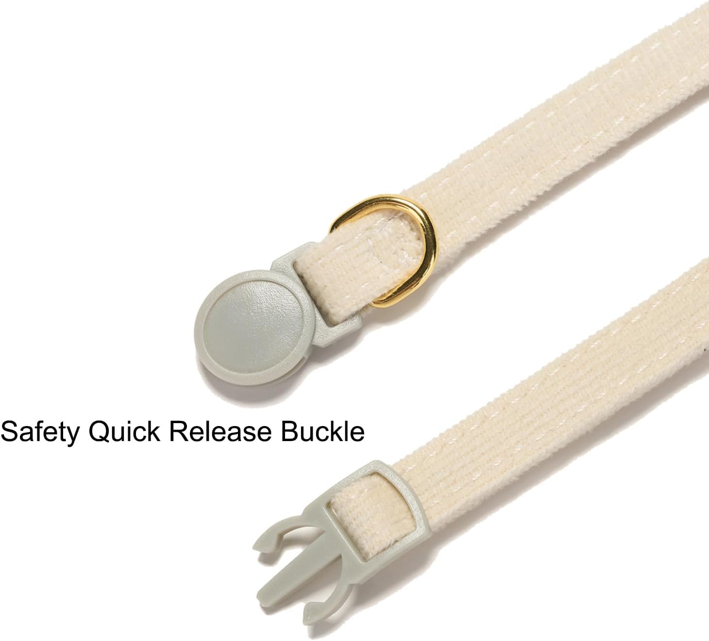 2 Pack Soft Corduroy Cat Collars with Bow Tie & Bell, Adjustable Breakaway Cotton Kitty Bowtie Collar for Female Male Cats(White & Grass Green)