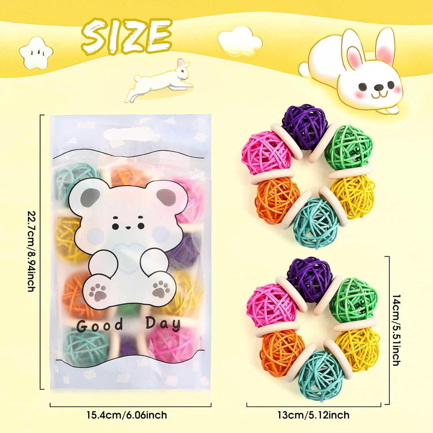 • Durable & Safe:We use non-toxic paints to color our bunny chew toys,hamster ball features vibrant and eye - catching colors,play with a lot of fun,The bright hues and cute designs make the toy stand out in your pet's play area, making it an instant favorite among your furry companions.