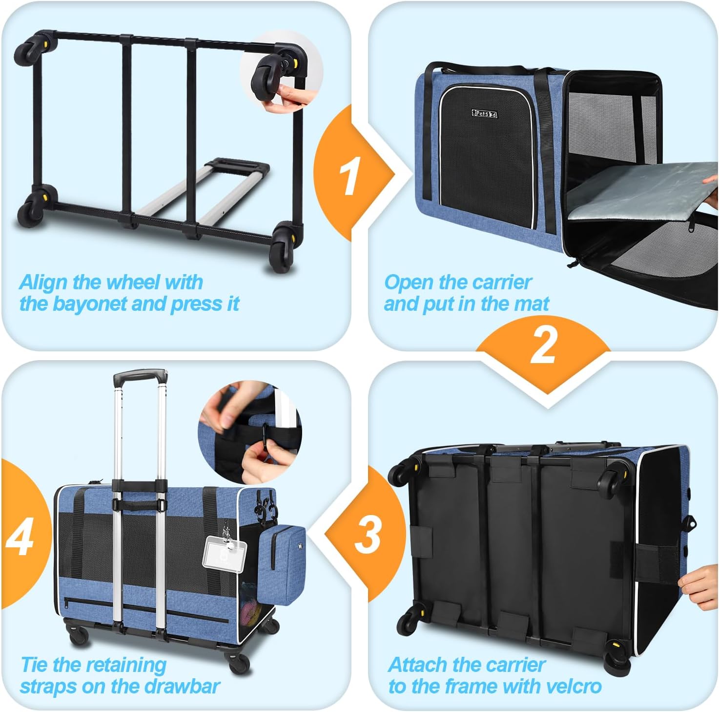 • 【SMOOTH AS PULLING A SUITCASE】The cat carrier with wheels' bar designed like a suitcase, you can not only use the double cat carrier like a suitcase, but also as a shoulder bag and a handbag. And the 4 high-quality wheels with 360° rotation can ensure a smooth and comfortable riding experience for the rolling cat carrier on uneven road surfaces or grass.