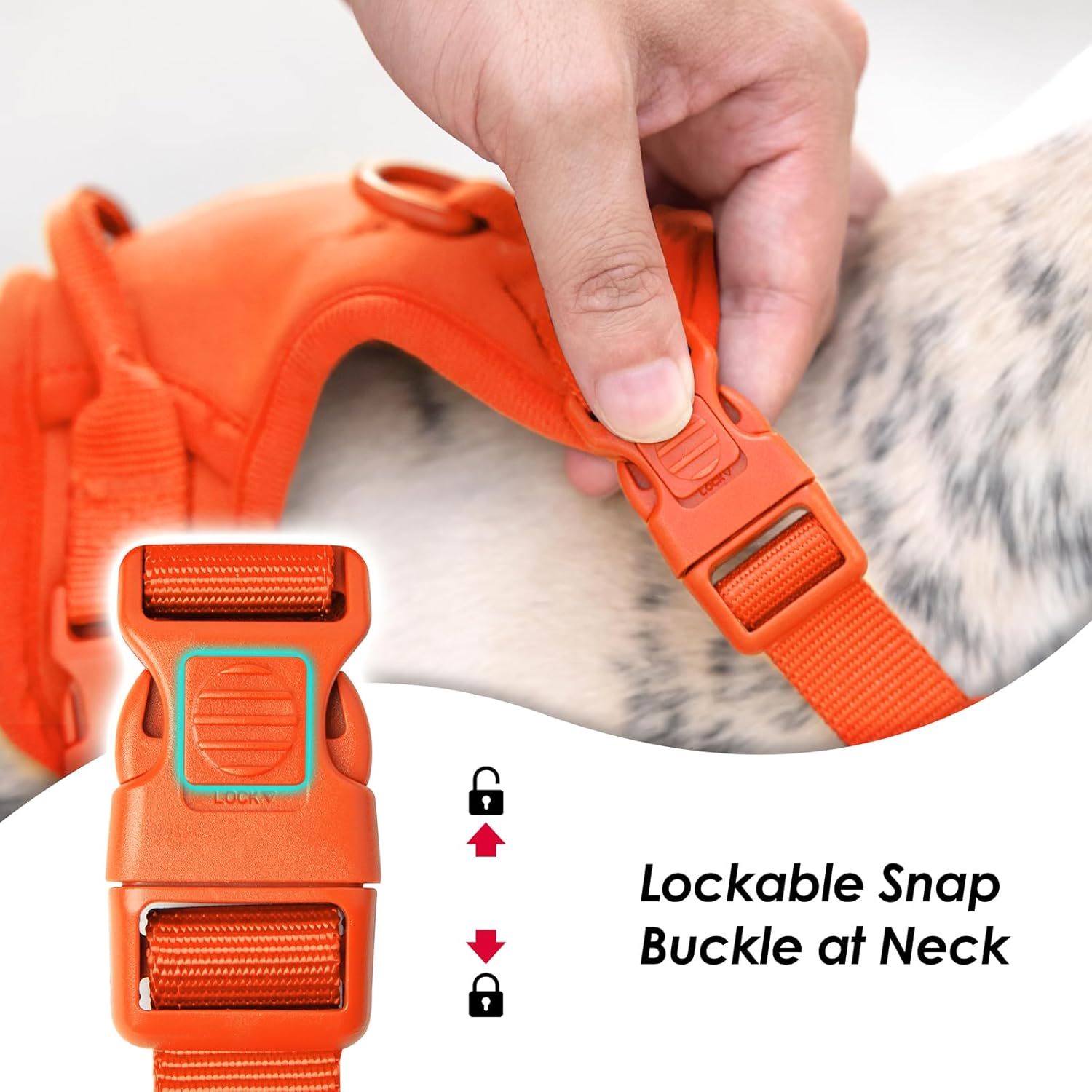 • Easy ON/OFF: It features a quick-release buckle with a lock at neck, ideal for dogs with big heads and small bodies that dislike over-the-head styles. The locking mechanism ensures your dog cannot slip out, offering enhanced safety and comfort during walks. Easy to put on and take off, no need step over your dog's head.