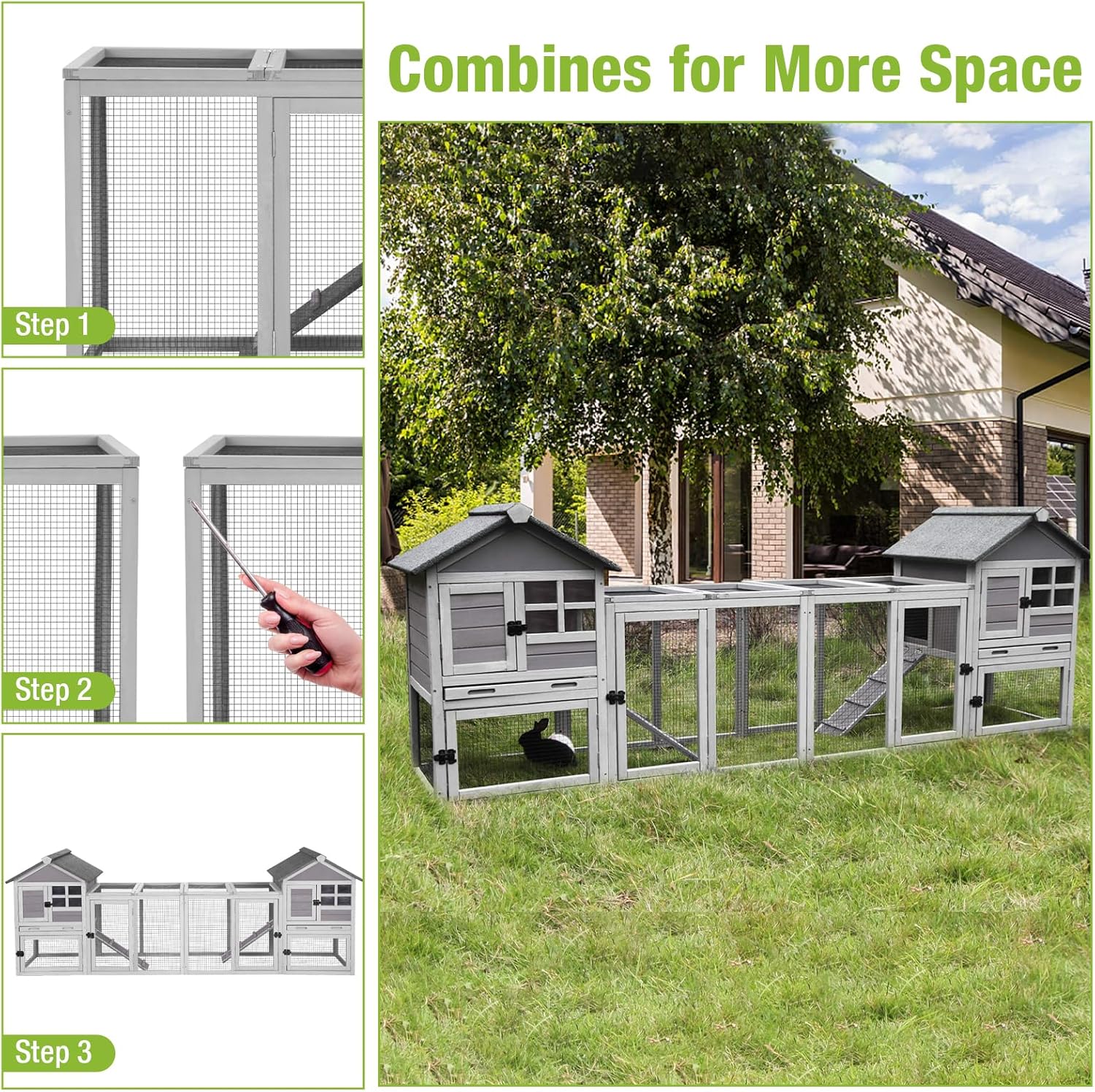 • EASY TO CLEAN: The rabbit hutch features a deeper, waterproof pull-out tray that won't leak and is easy to clean