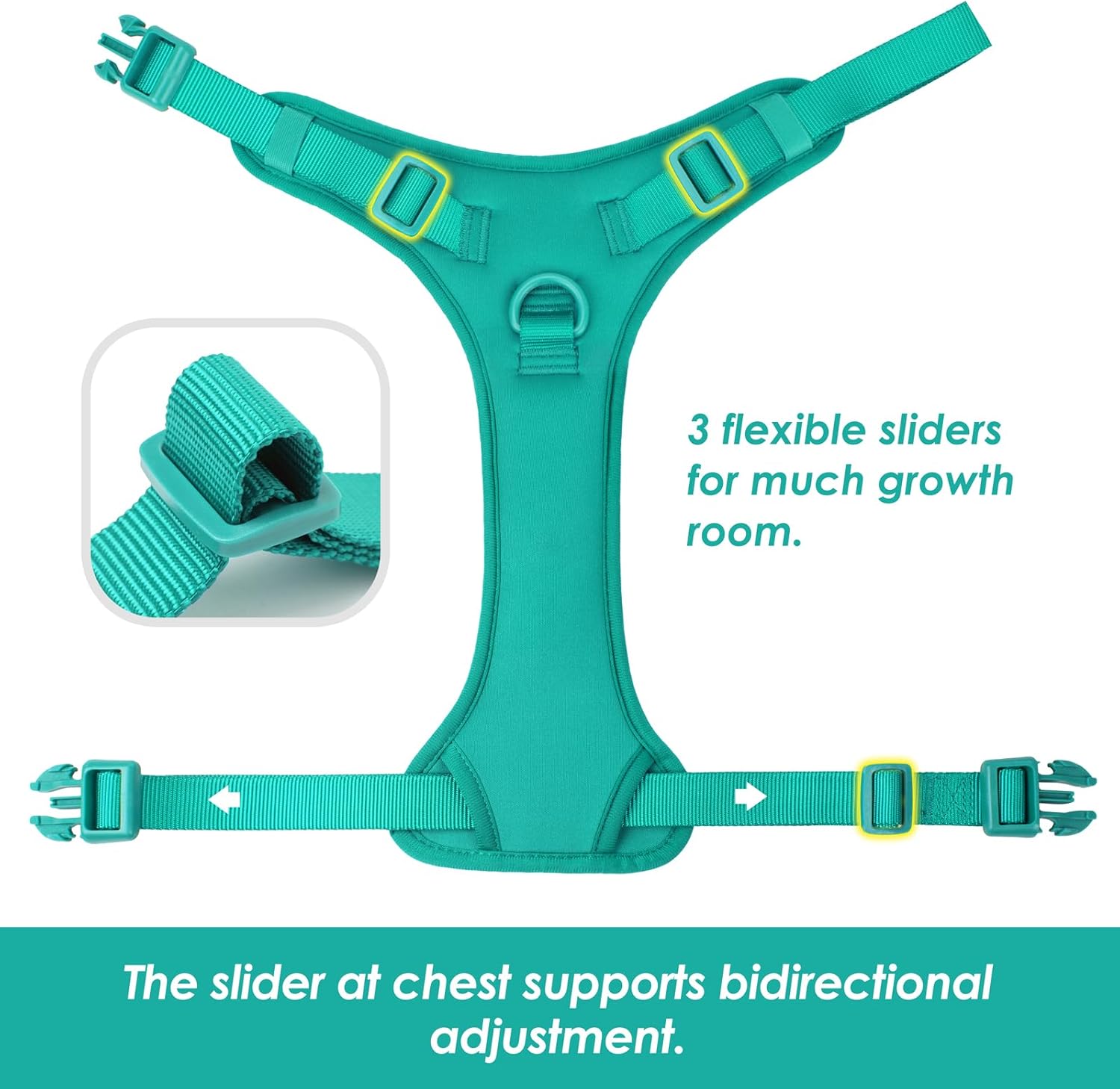 • No Pull Design: This dog harness features a front D-ring for no-pull control and a back D-ring for daily walking. The front ring redirects pulling to gentle side pressure, discouraging lunging and making walks more comfortable and manageable. With both rings, you have the flexibility to choose based on your walk's needs.