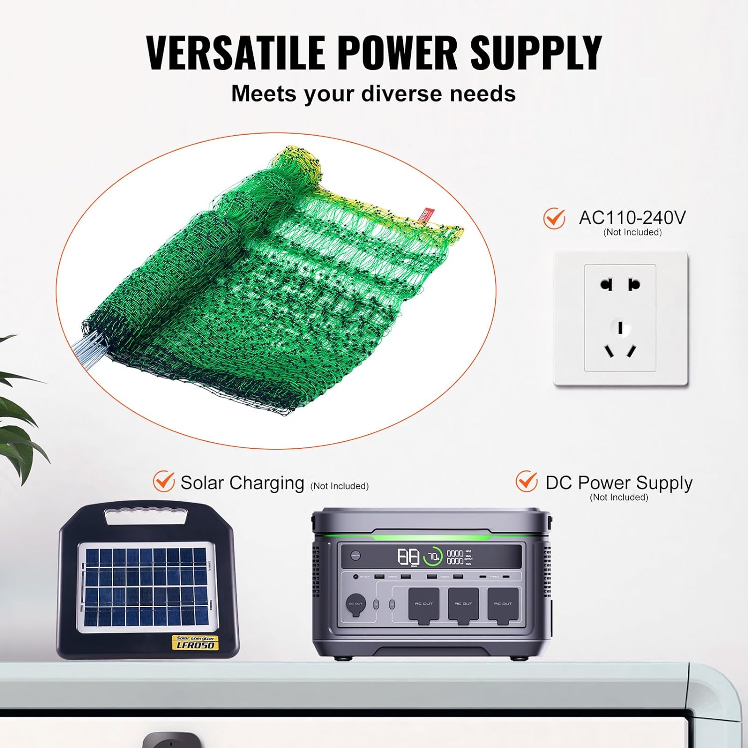 • Multiple Power Supply Options: This electric fence supports external power supply of AC110-240V, as well as solar panels. These multiple power supply options reduce energy consumption and provide a green solution for your farm.