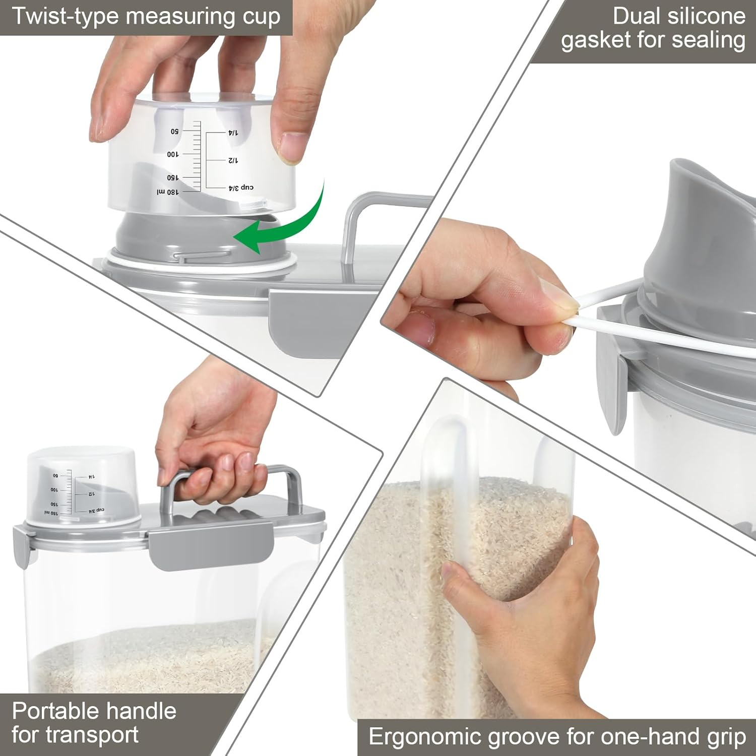• AIRTIGHT SEAL RICE STORAGE: The side-locking lids with silicone seal keep out moisture, always keeping your food super fresh and dry