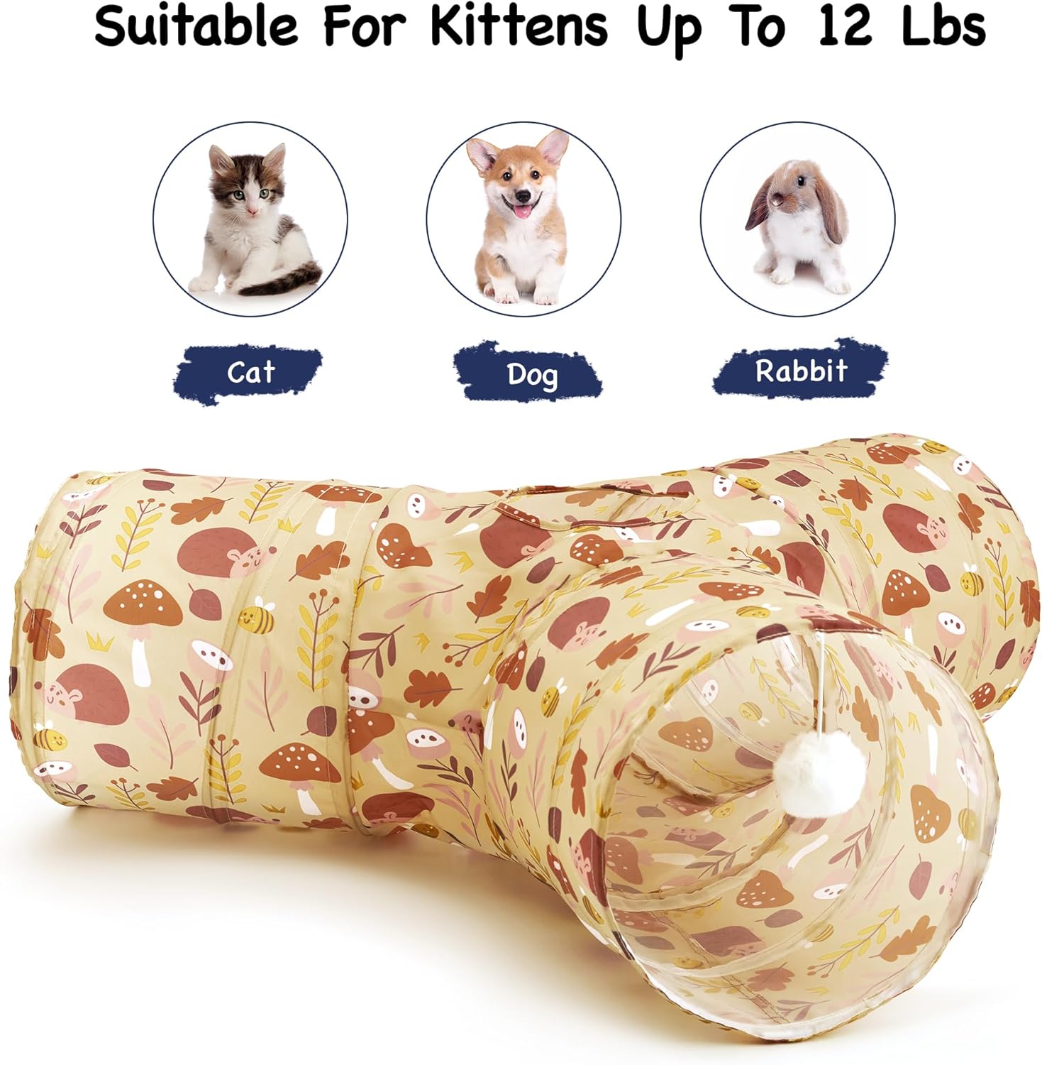 Tempcore Pet Cat Tunnel Tube Cat Toys 3 Way Collapsible, Cat Tunnels for Indoor Cats,Kitty Tunnel Bored Pet Toys Peek Hole Toy Ball Puppy, Kitty, Kitten, Rabbit Khaki Hedgehog