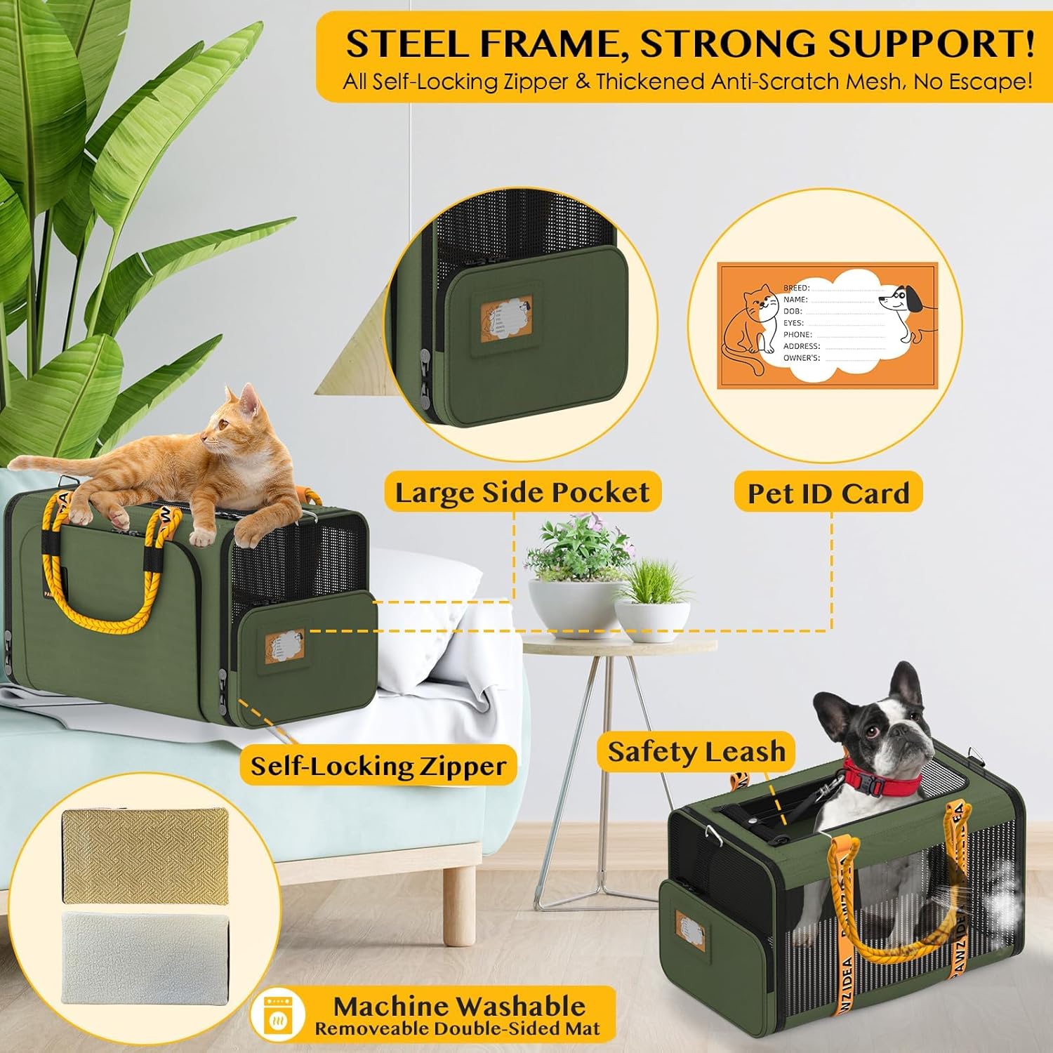 - Easy Access and Superior Ventilation: Designed with top load pet carrier and independent openings on both sides, plus an upgraded independent small door, making it effortless for your pet to enter and exit freely without the carrier collapsing. All anti-scratch mesh provides excellent visibility and air circulation, keeping your pet stays comfortable and calm.