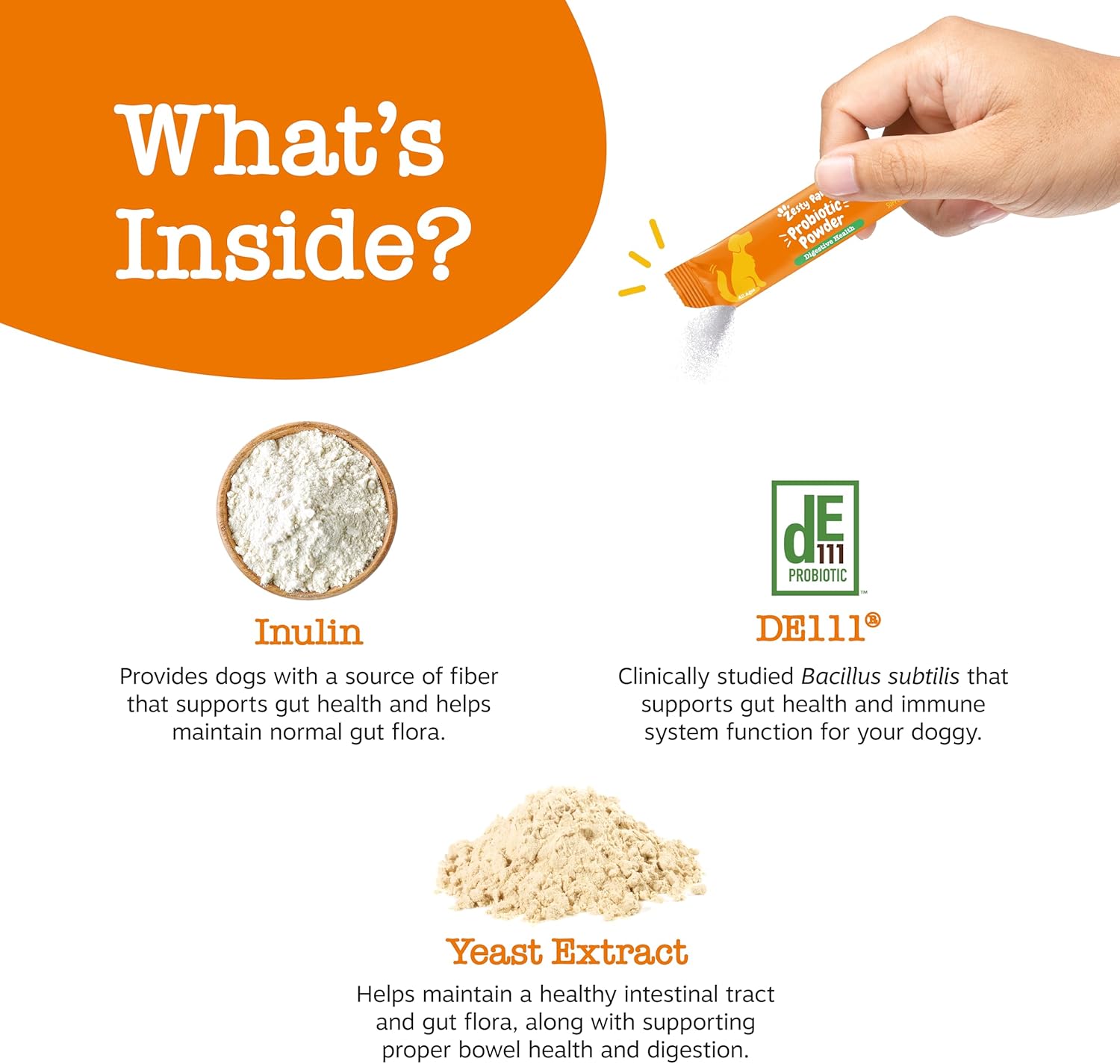 • Easy to Give, Easy to Love - The pain of giving your doggy yucky daily powders is over. This probiotic powder for dogs has a yummy pumpkin flavor and mixes easily with your dog's favorite wet or dry food.