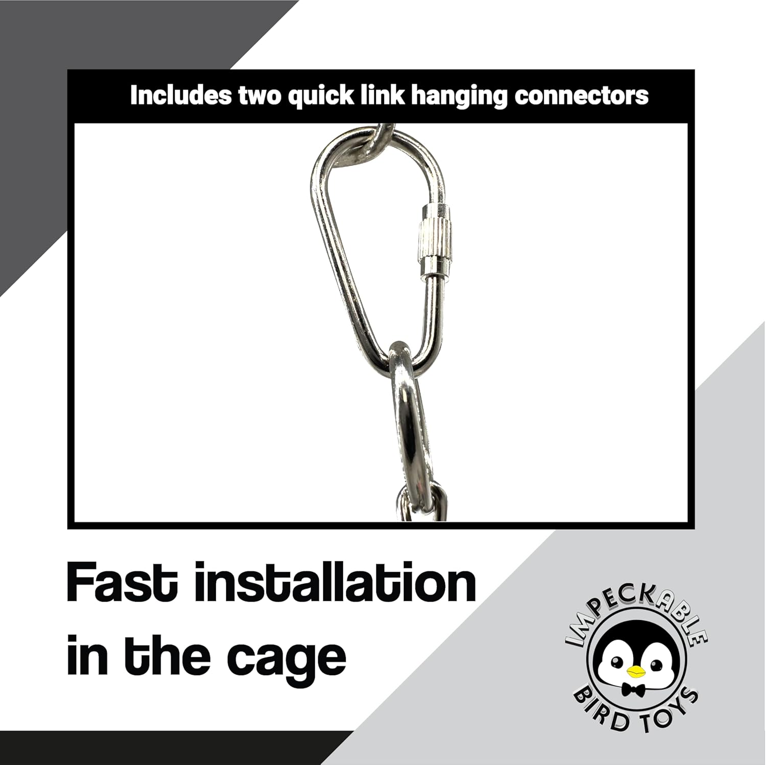 • Two quick link connectors allow flexible cage hanging and multiple orientation options for fresh experiences. Easily change how the toy is hung to keep the play experience fresh and fun for pets.