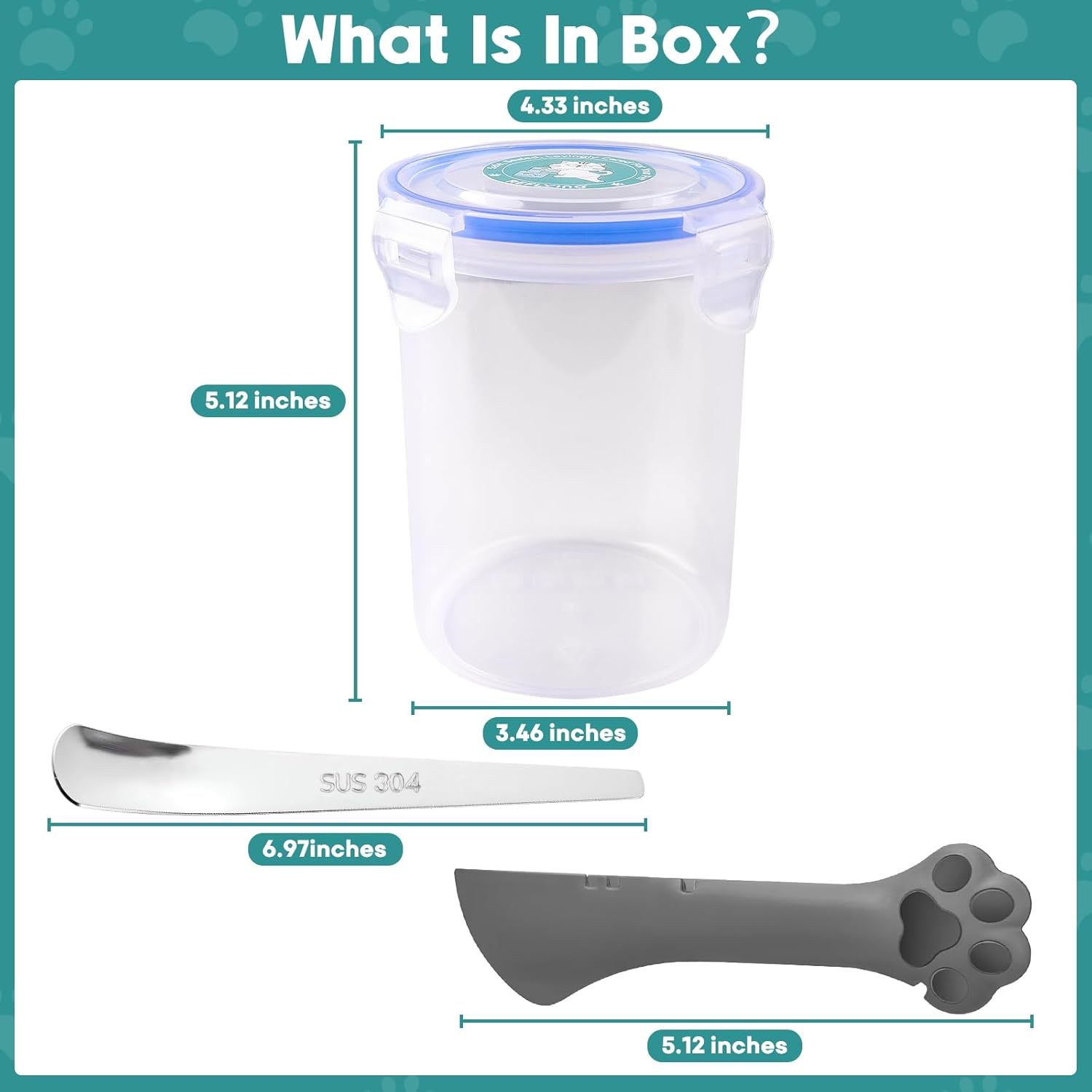 • FITS MOST 6.5oz PET FOOD CANS: This versatile pet food storage container is designed to fit most standard-size cat & dog food cans. This air tight dog food storage container measures 5.12 x 3.46 inches, accommodating most standard 14 oz cat & puppy can food sizes