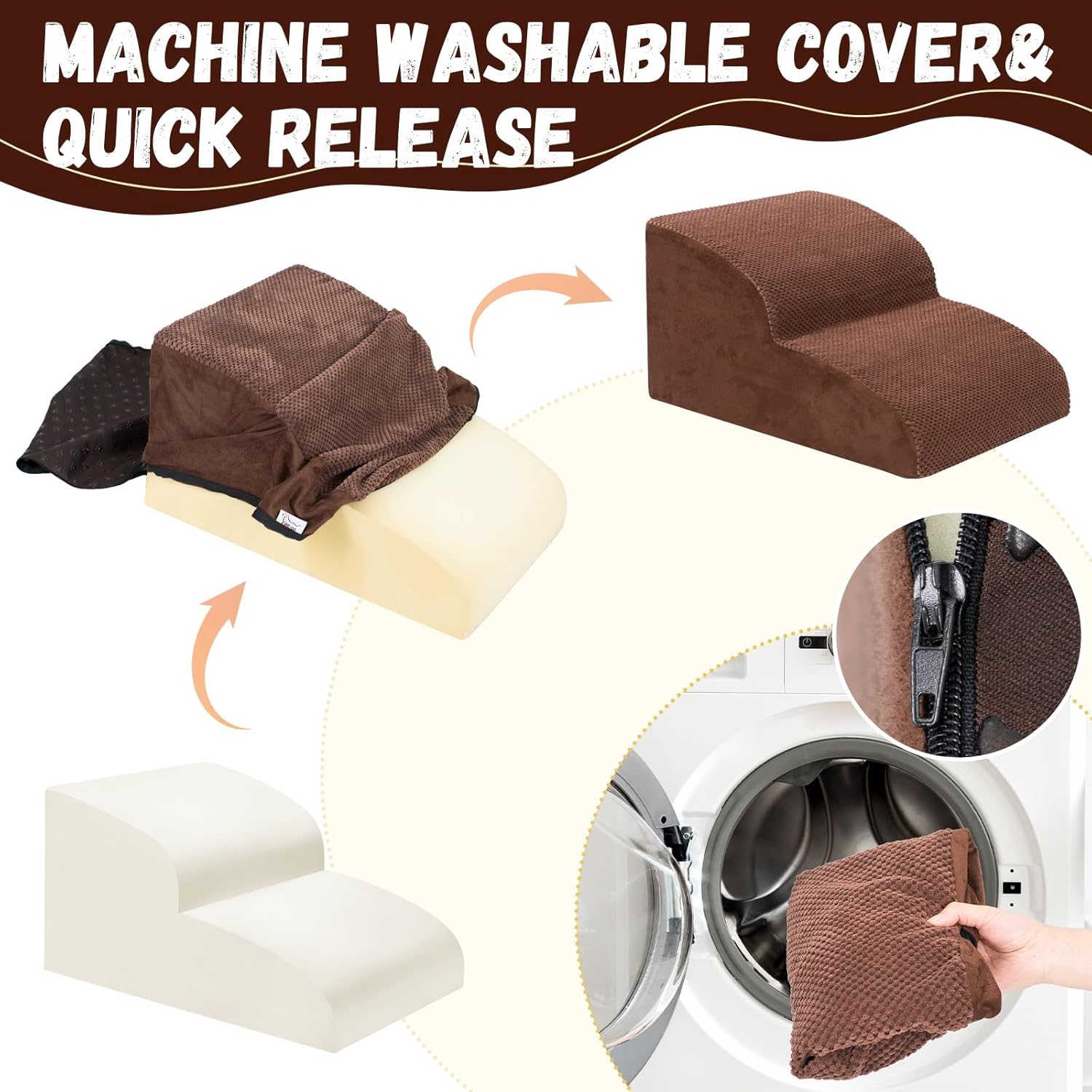 • Double Sided Anti Slip: The dog steps cover is made of corduroy with greater friction than other fabrics, which provides extra grip while in use, the bottom features nonslip rubber dots, preventing pets from sliding while climbing, providing pets with double safety protection