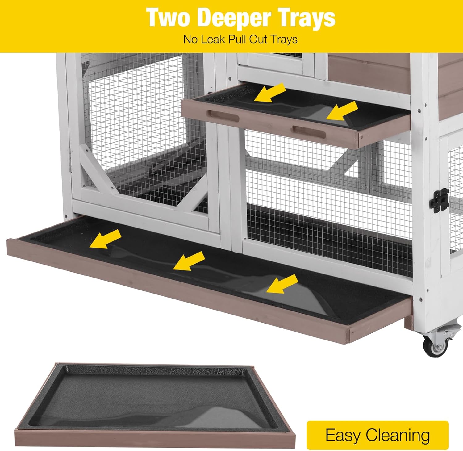 • 2 No Leak Trays: Keeping your pet's living space clean and dry with our two deeper pull-out trays. These trays are designed to prevent leaks, making cleanup a hassle-free task for you and a healthier living condition for your bunny
