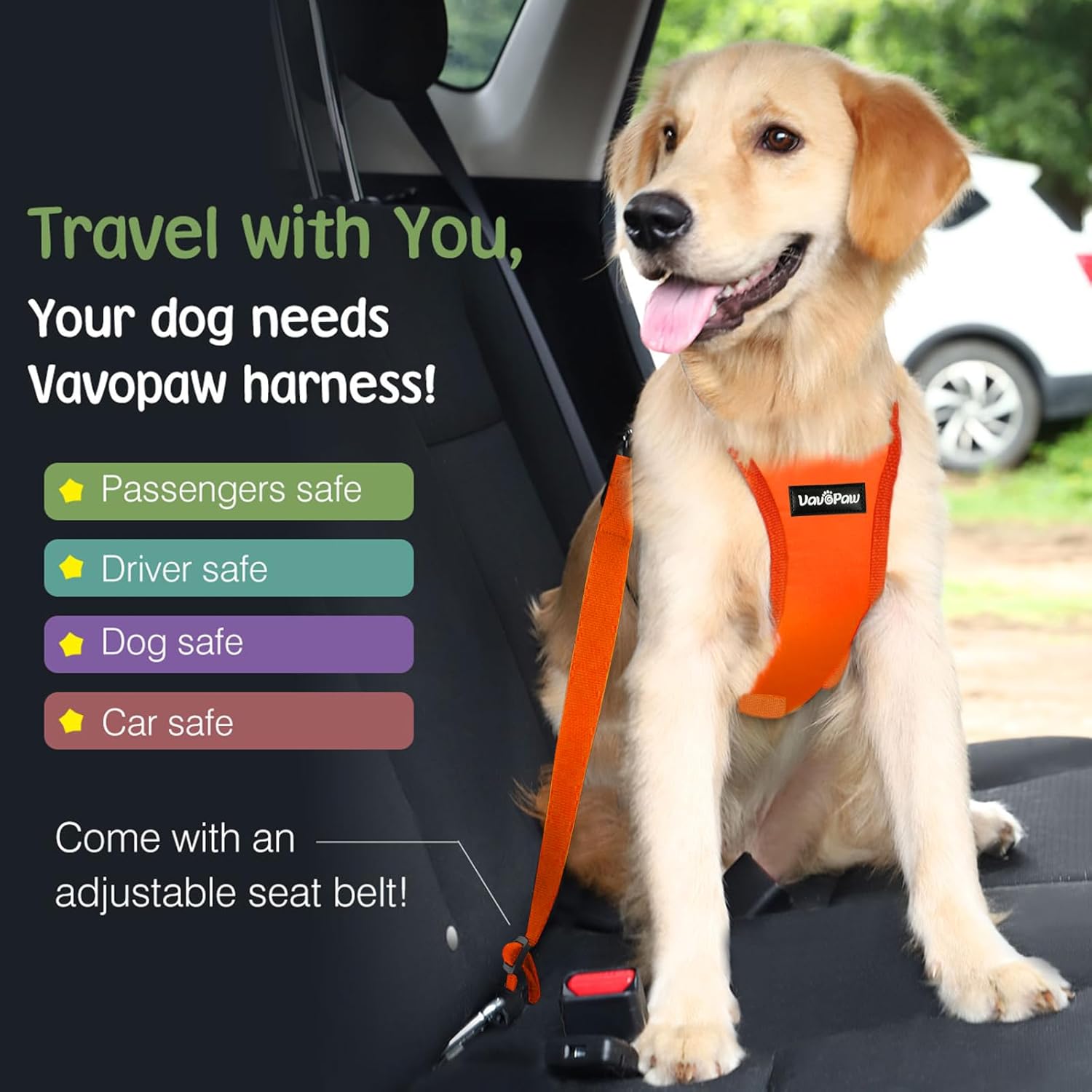 Dog Seat Belt, Safety Vest Dog Car Harness with Adjustable Buckle Dog Seat Belt for Vehicle Nylon Pet Safety Seat Belts Heavy Duty(L, Orange)