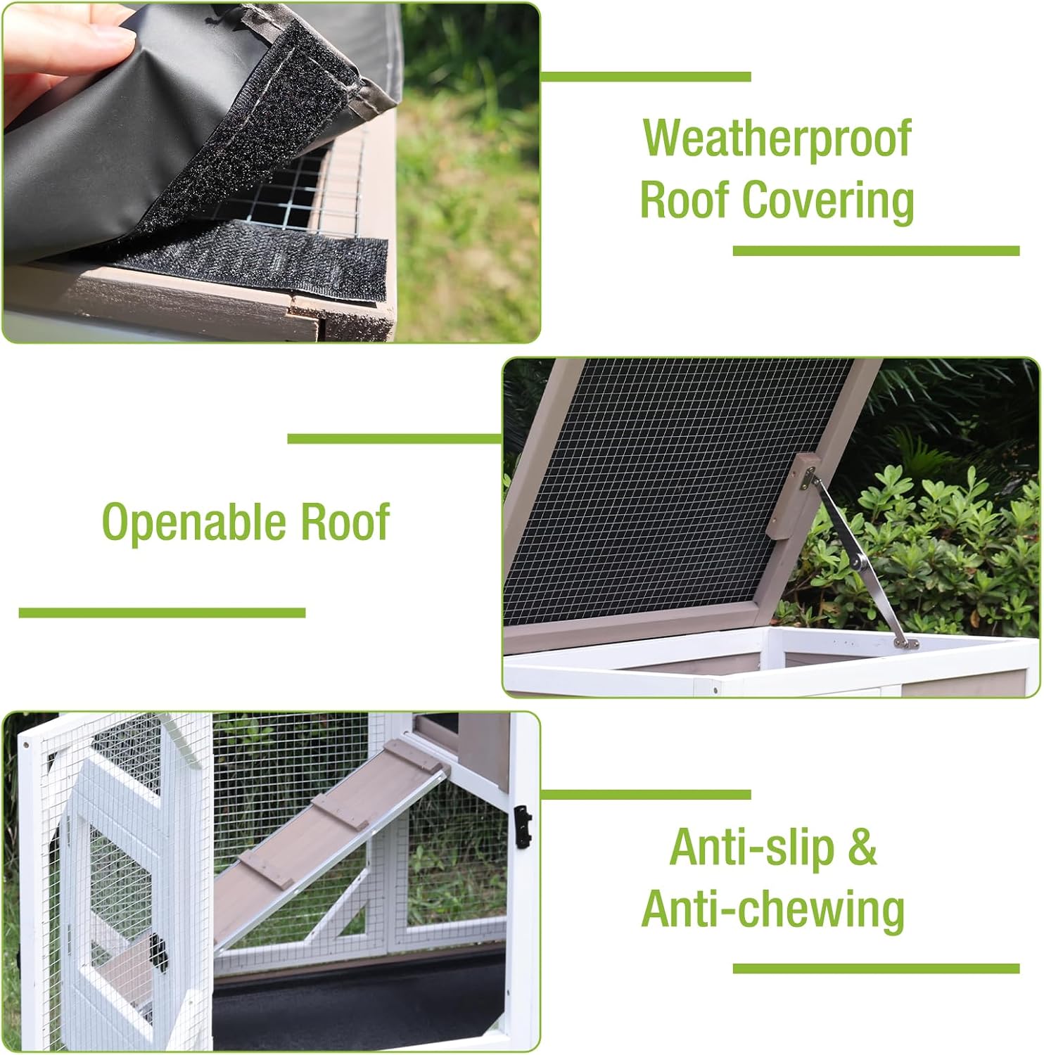 • Indoor and Outdoor: The openable roof allows for easy feeding and interaction. Plus, the waterproof covering shields your pet from the weather and offers shade, making this hutch perfect for both indoor and outdoor use