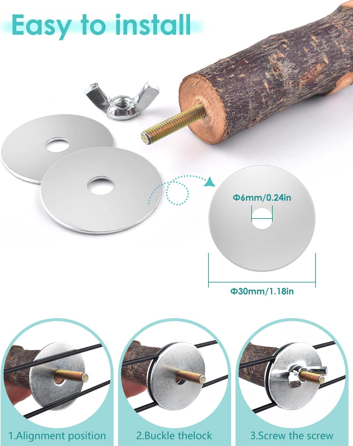 • Perfect Design: Each perch platform for parrots is equipped with a metal wing nut and built-in bolts, enabling it to be firmly attached either inside or outside the cage without the requirement of additional installation equipment. This provides the parrots with extra living and landing space, creating a natural habitat