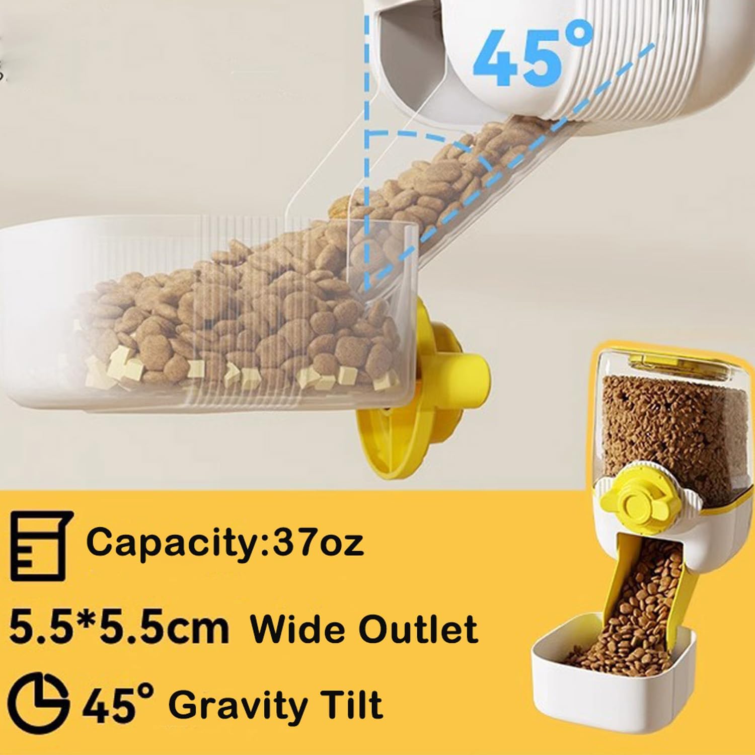 • Easy to Clean】: Self-feeding dog feeder has a side cutout handle for easy lifting, and the food and water bottle can be removed from the base and rinsed directly with water. Weekly cleaning is recommended. The waterer with spring valve design prevents large amounts of water leakage after tipping over, non-skid rubber feet for secure placement
