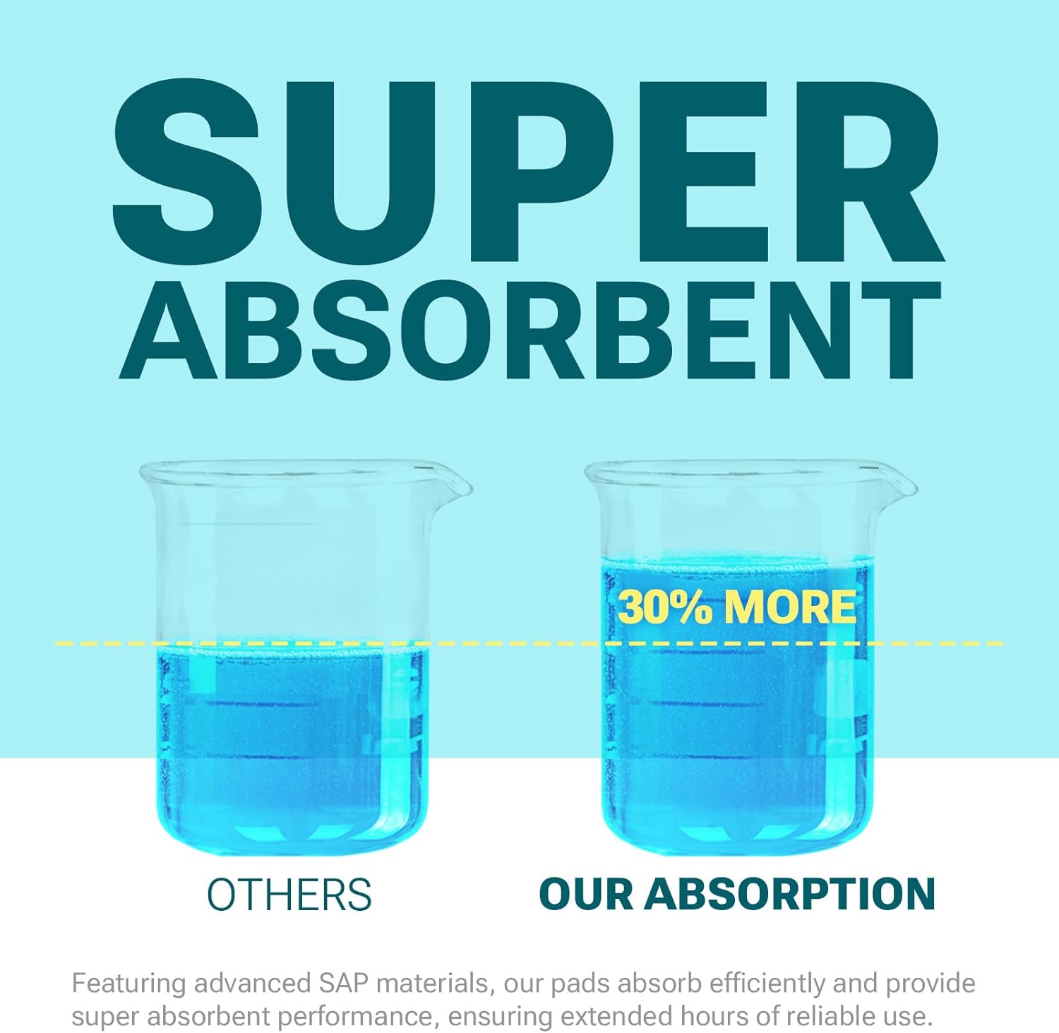 • Ultra-Absorbent Core - 30% Faster: Advanced SAP tech absorbs liquid 30% faster than standard pads, providing up to 12 hours of reliable, leak-free protection.