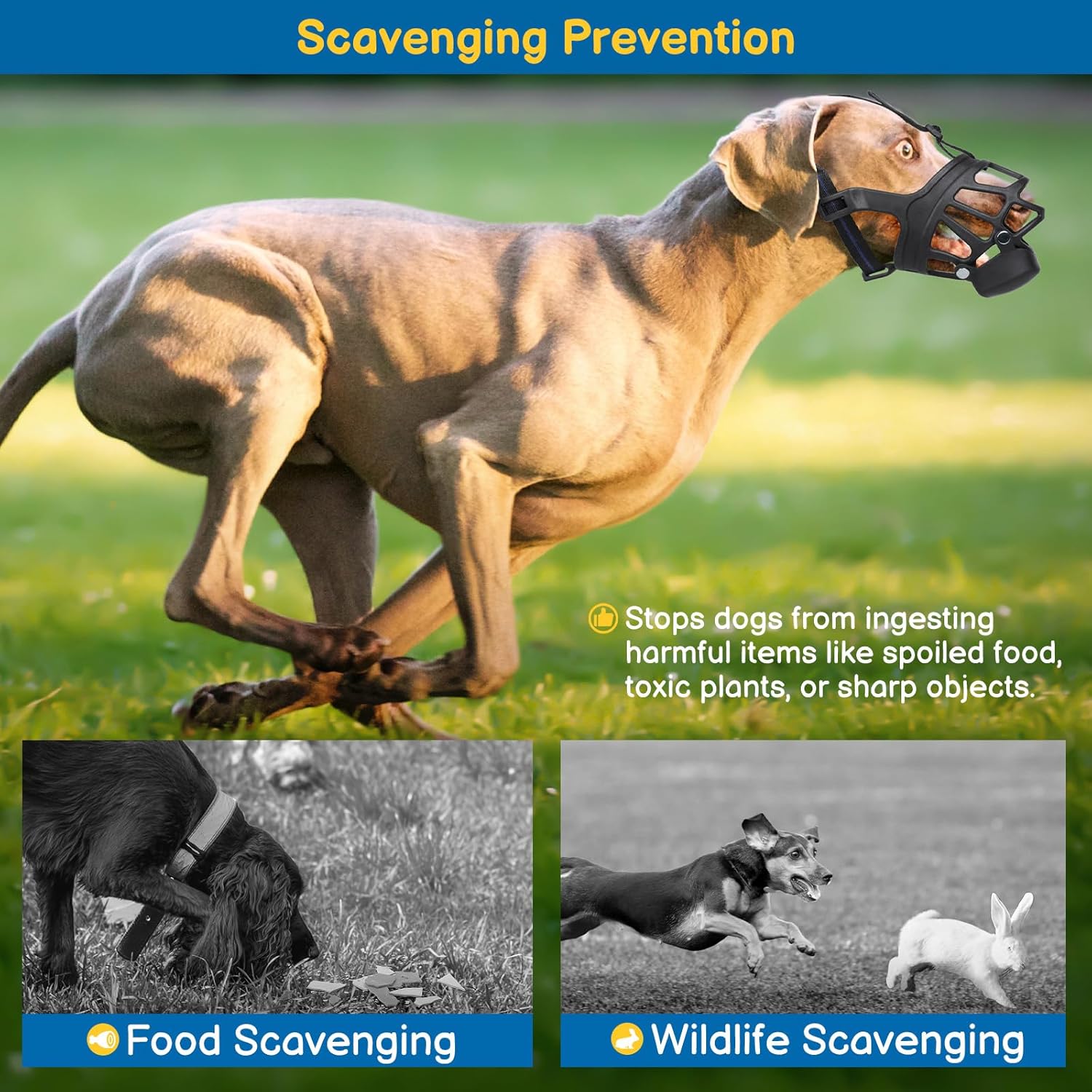 - Scavenging & Biting Prevention: If your dog has a tendency to scavenge and eat anything, this dog mouth guard is a true lifesaver. The BARKLESS anti-scavenging muzzle comes with a snap-on slow feeder pad to prevent biting, wildlife scavenging during walks, eating rocks, and licking wounds after surgery. It blocks access to food and harmful objects while still allowing your dog to pant and drink comfortably