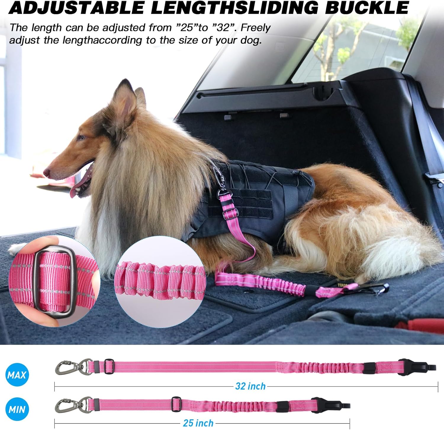 AUBELL Dog Seat Belt for Car,2 Pack Set 3-in-1 Adjustable Reflective Bungee Heavy Duty Dog Car Harness Tether with Clip Hook Latch & Buckle,Swivel Zinc Alloy Carabiner,Black+Hotpink