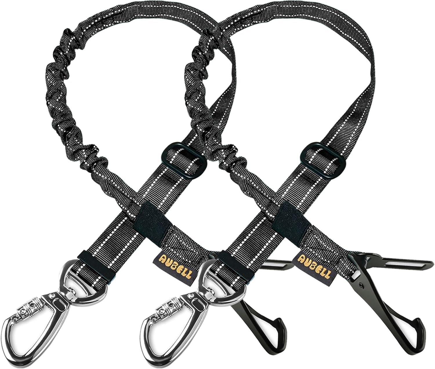 AUBELL Dog Seat Belt for Car,2 Pack Set 3-in-1 Adjustable Reflective Bungee Heavy Duty Dog Car Harness Tether with Clip Hook Latch & Buckle,Swivel Zinc Alloy Carabiner,Black+Black