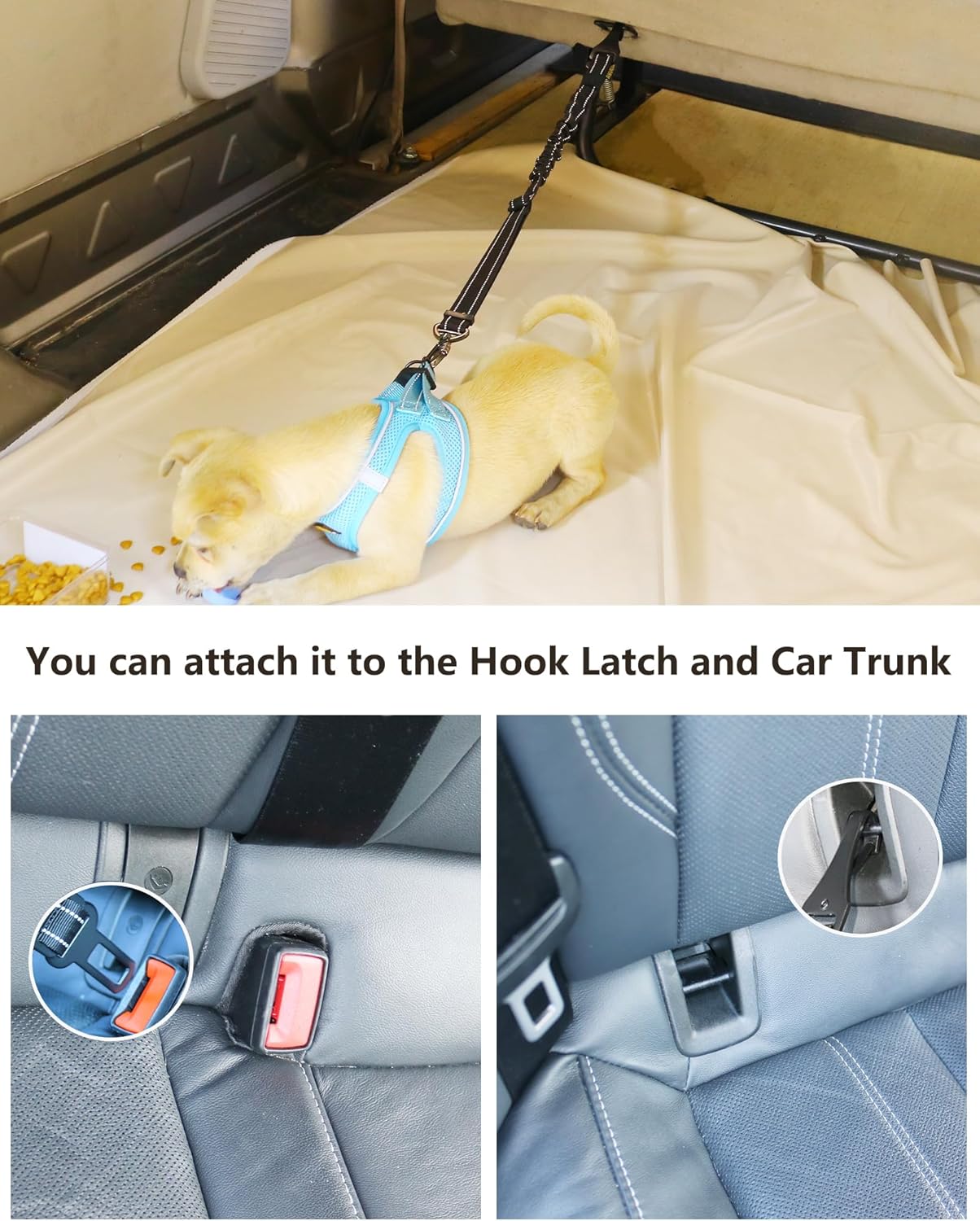 • Universal Compatibility - AUBELL dog car harness seatbelt is suitable for the different space of the vehicles. Canine bungee seat belts are suitable for a puppy, teether dog, small breed doggie, strong dog, and medium-large dog. For your pet's security, please do not attach the seat belt to your pet's collar directly. Using the seatbelt leash with a pet harness is recommended over a pet collar