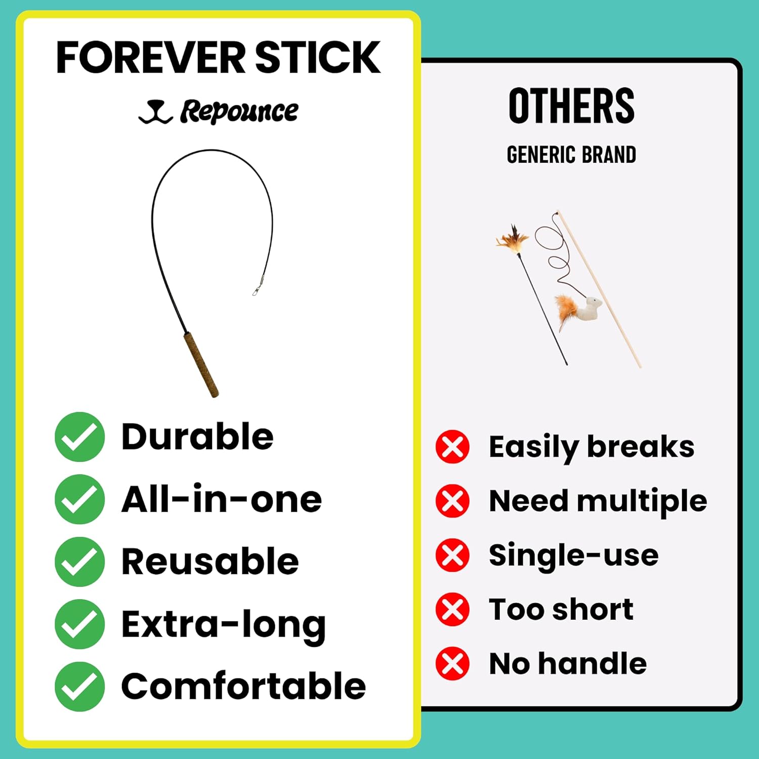 • Forever, No More Single-Use Products: Stop buying flimsy cat wand toys that snap in days. The Forever Stick is built to last. Just swap out the toy, not the wand! This cat toy wand is reusable and perfect for cat owners who want durability and value. Great for cat toys for bored indoor adult cats and the best cat accessories for indoor cats.