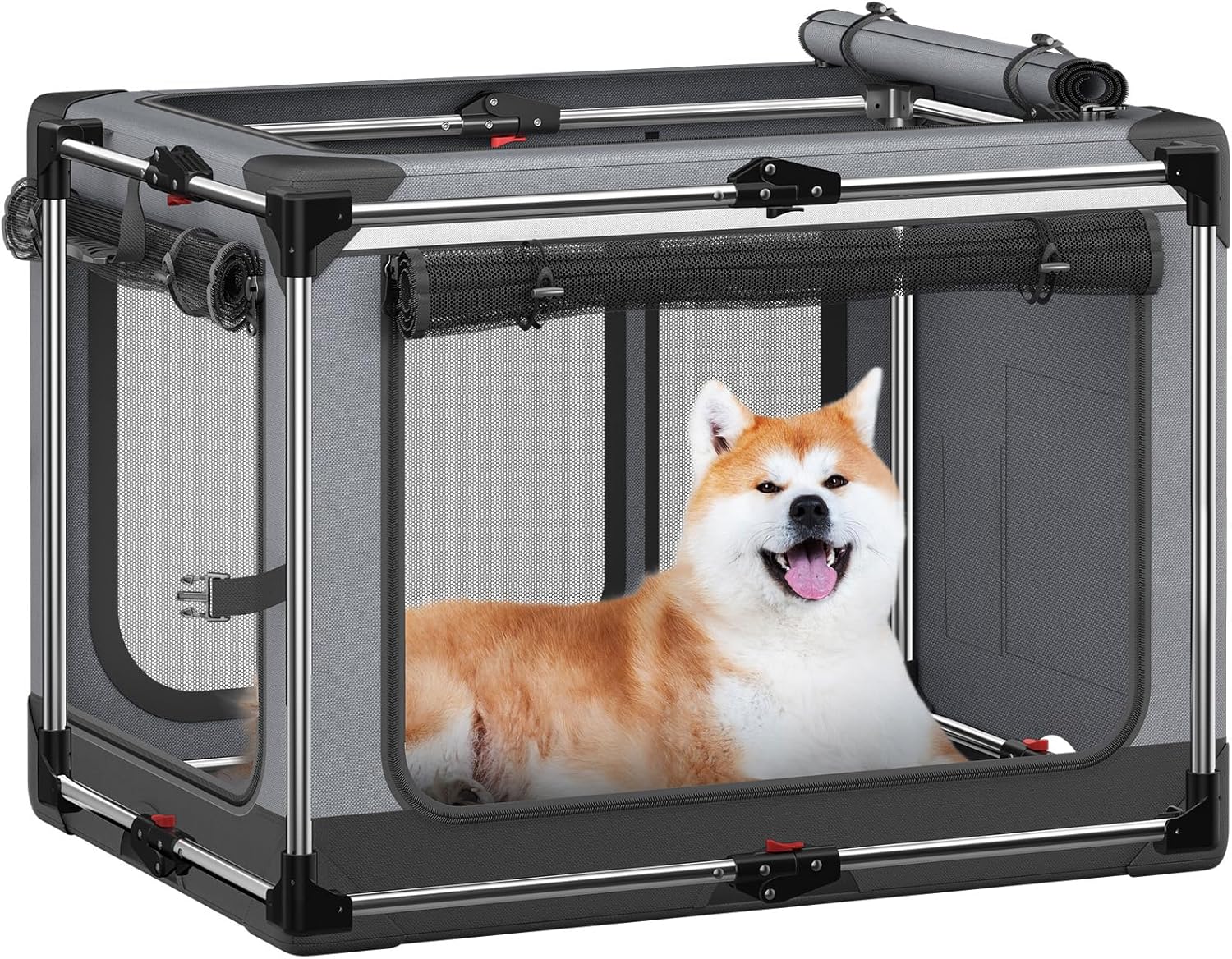 • Foldable & Portable Design: Easily folds flat in under a minute, making it perfect for travel and compact storage. Ideal dog cage for both indoor use and outdoor adventures with your furry friend