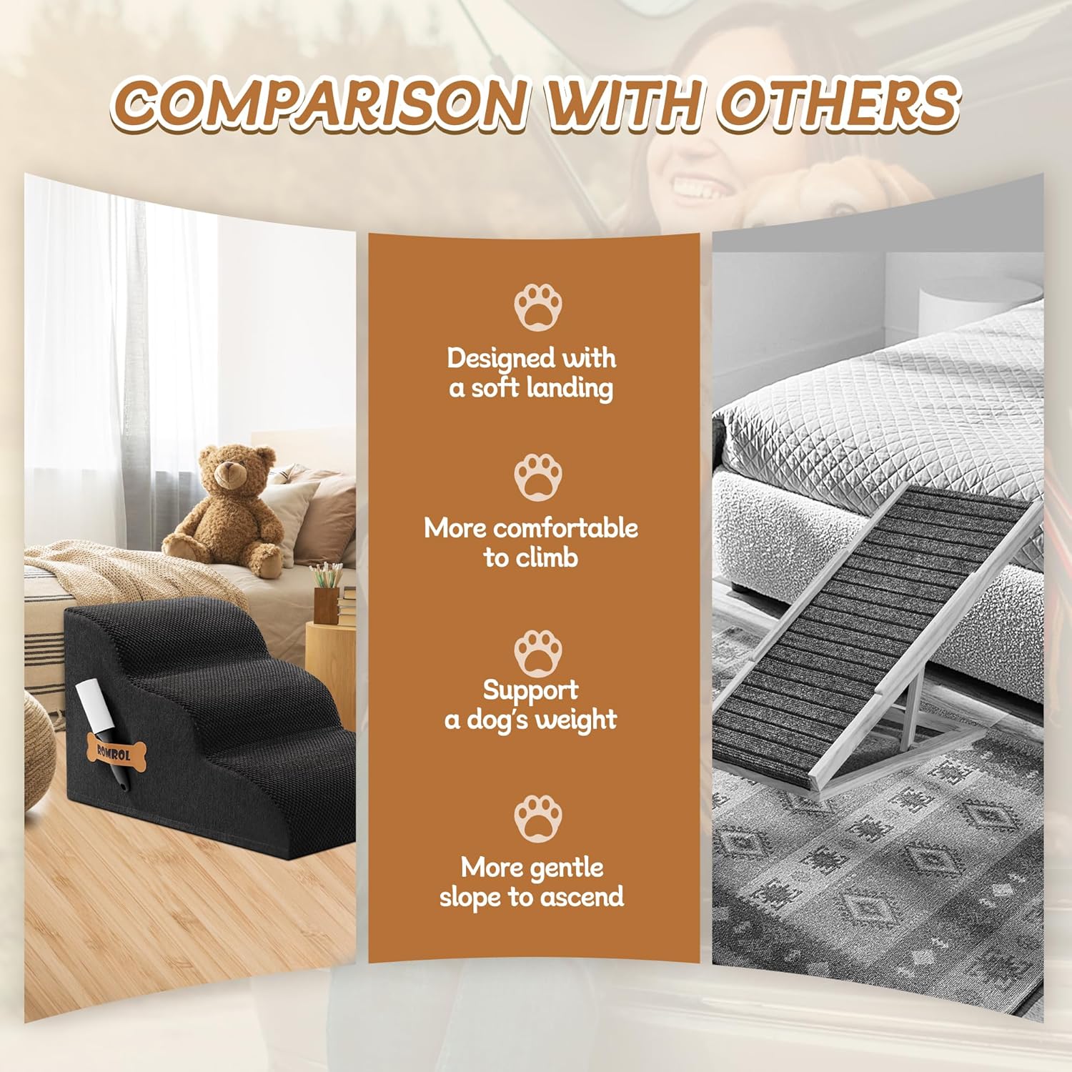 • 33D REBOUND HIGH-DENSITY FOAM: Our 33D foam delivers 63% faster rebound vs standard foam with enhanced weight capacity. Perfect for puppies, senior dogs, and pets recovering from surgery to access beds/couches safely. Dual-purpose as cat stairs for multi-pet households