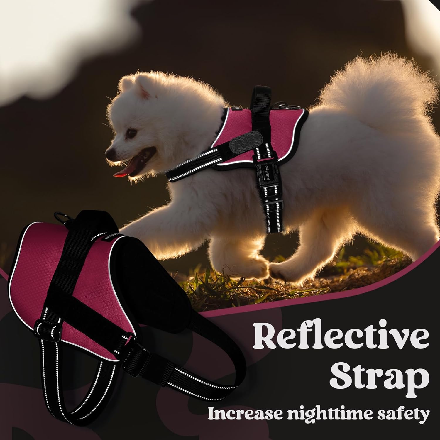 • Safety and Control Made Easy: Walk with confidence! A strong D-ring and durable nylon handle offer full control, while reflective strips keep your dog visible in low light. Whether on busy streets or dimly lit paths, this harness prioritizes safety with every step.
