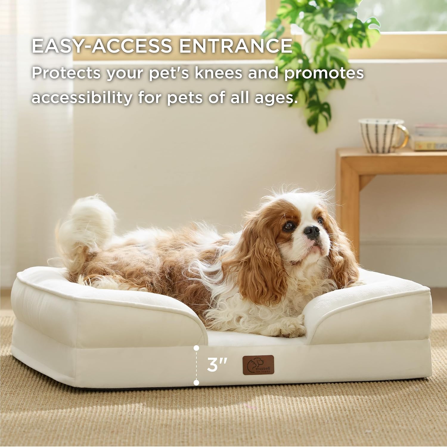 • Enhanced Comfort: The 4-sided bolster design promotes ultimate comfort and security, offering your pet a variety of cozy positions to snuggle. The cushioned bolster shape is deeply filled to support your pet’s head and neck for a more restful sleep. And the lowered entrance protects your pet's knees and promotes accessibility.