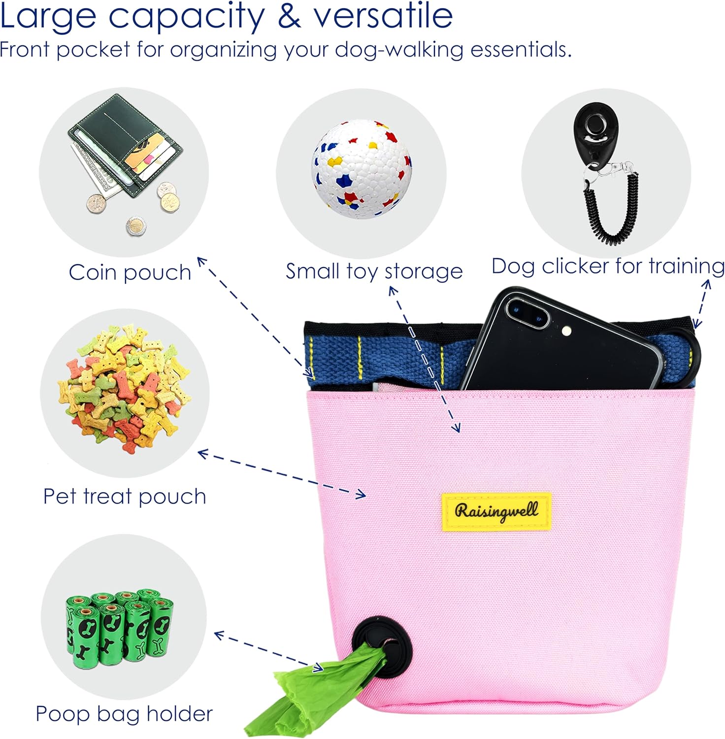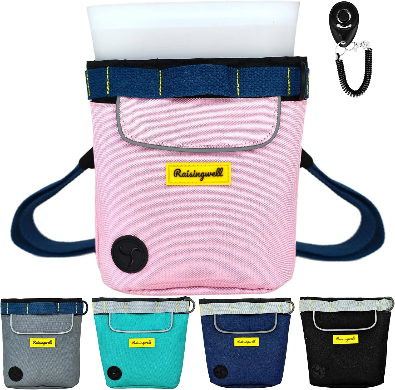 • 5.Durable Tech Material: Raisingwell's dog treat training pouch is made from durable, washable, and non-toxic fabric. Notably, its waterproof lining solves the problem of difficult-to-clean interiors of training bags, making it a great choice for your dog treat bag or dog treat fanny pack.