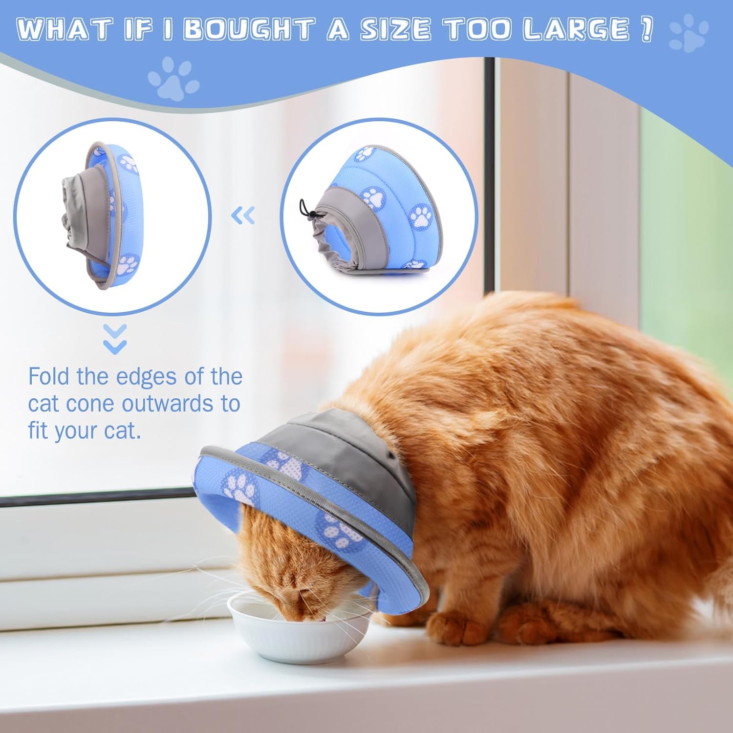 • Vision-Friendly Folding Edges - Understanding how pets dislike bulky cones that impede movement, our e collar for cats features a folding edge design that won't obstruct your cat's vision like traditional collars. This allows your cat to continue chasing butterflies, hummingbirds, and grasshoppers with ease while wearing the pet cone.