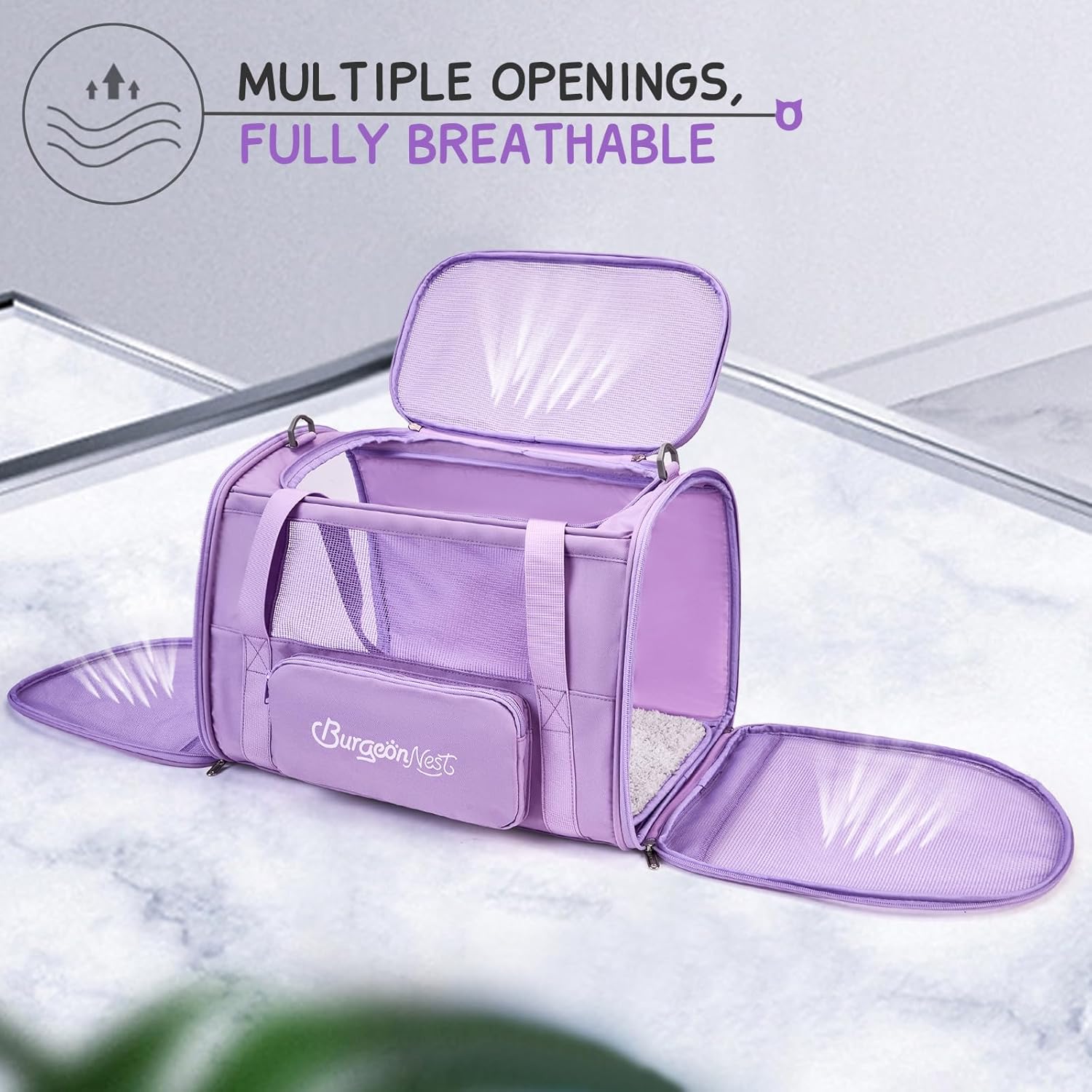 • Well-made Large Cat Carrier: With upgraded memory metal for sturdy frame, this cat carrier for 2 cats does not collapse. Made of breathable fabric, BurgeonNest cat carrier has 3 doors to open, it is more convenient to put your dog cat in or out. Plush cushion with sturdy bottom inserts ensures comfortable environment for pets.