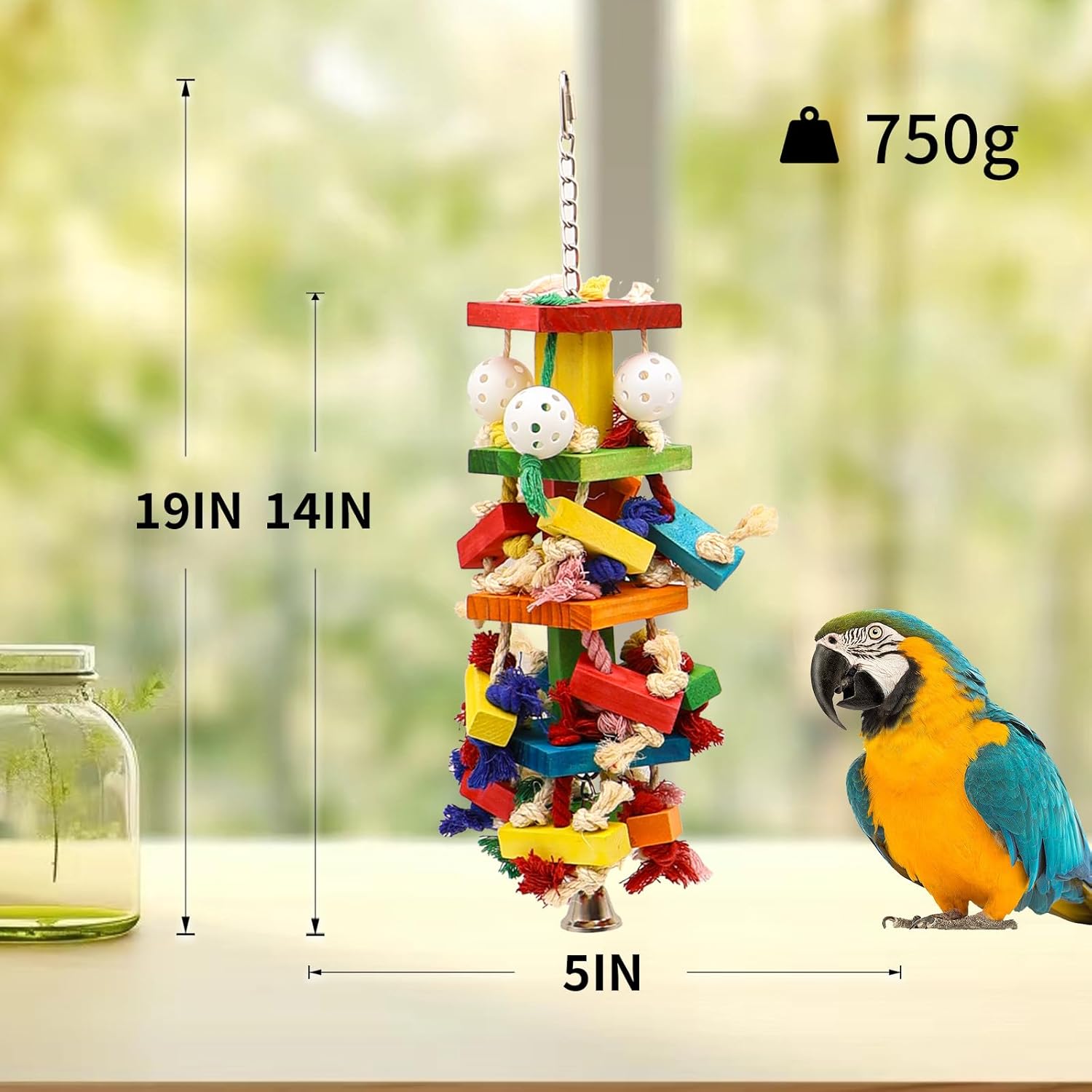 • STURDY & LONG-LASTING CONSTRUCTION Built to withstand vigorous play, our chew toy features reinforced stainless steel chains, durable poplar wood blocks. The integrated stainless steel bell adds auditory enrichment while maintaining structural integrity for persistent chewers like cockatoos and macaws.
