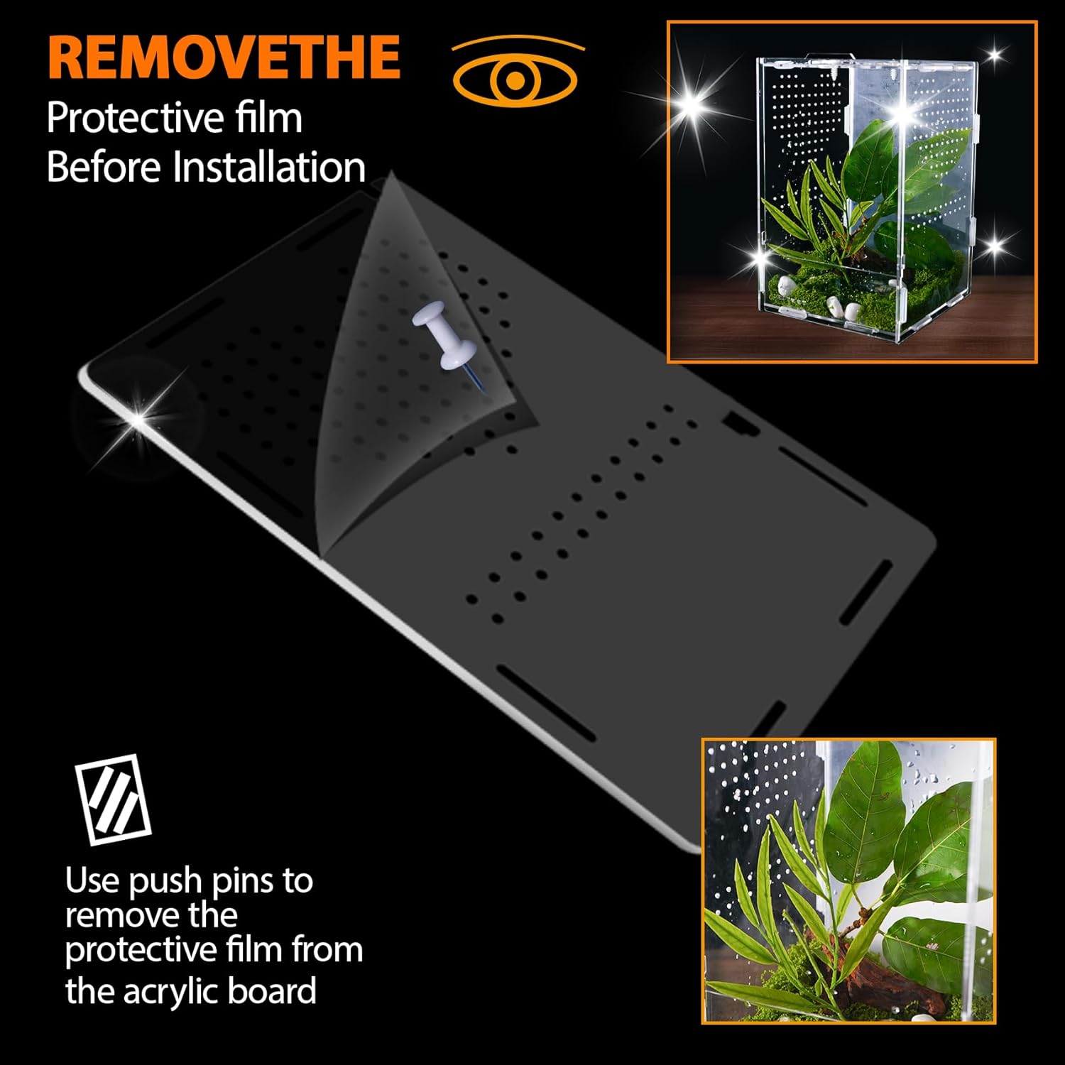 • 【Easy Installation】First tear off the protective film on the surface. Acrylic terrarium tarantula enclosure require only a simple installation, and rubber bands work well to hold everything together. It is also easy to disassemble when not in use, saving storage space.