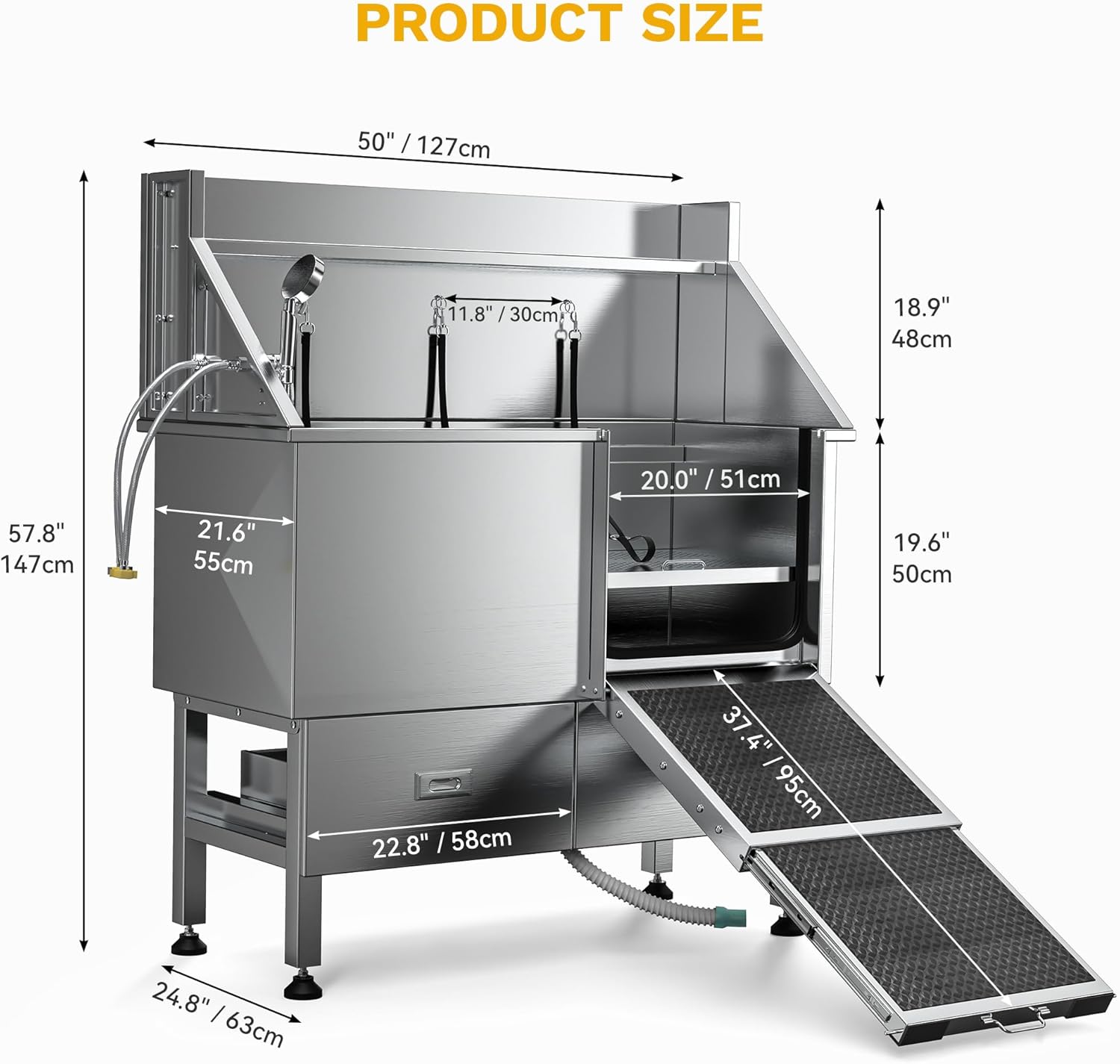 • Enhanced Structure: DWVO 50in dog bathtub boasts a tub body constructed from durable, corrosion-resistant 304 stainless steel; Its one-piece welded design enhances its longevity, promising years of reliable use